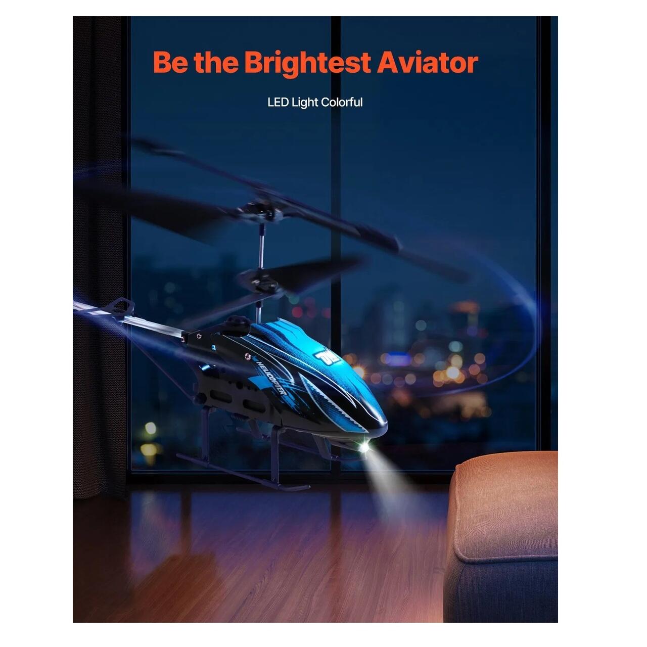 Zbor nocturn distractiv: Cu multiple efecte luminoase LED, elicopterul cu telecomanda arata uimitor in timpul zborurilor nocturne si ofera avertismente de securitate atunci cand bateria este descarcata. Distractiv atat pentru joaca in interior, cat si in exterior.