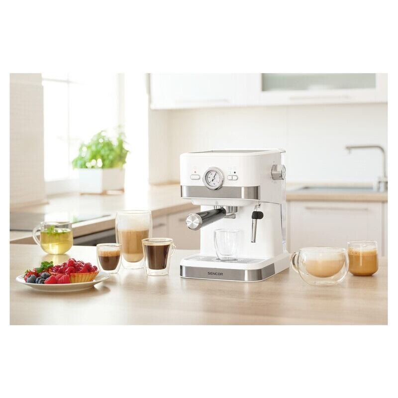 Espressor manual 20 bar, cappuccino, 1050W, rezervor apa 1.5 l, Baghetă de abur rotativă, Alb