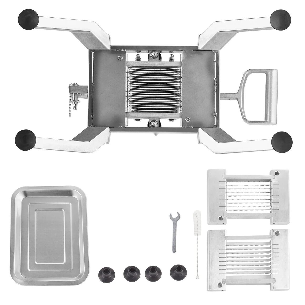Usor de curatat: Construita din materiale de calitate alimentara pentru toate partile care intra in contact cu alimentele, aceasta masina de feliat rosii poate fi curatata usor cu o laveta sau cu apa dupa utilizare. Lamele si alte componente sunt detasabile pentru o curatare temeinica, asigurand o feliere igienica pentru utilizarea ulterioara.