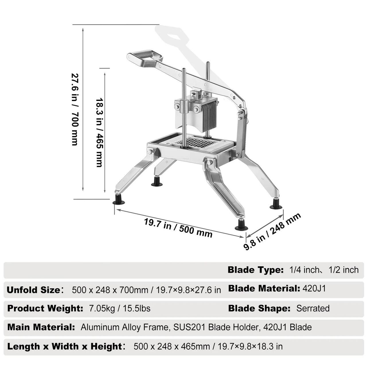 Feliator manual pentru cartofi legume, fructe, Profesional, Inox/Aluminiu, 1/4 și 1/2 inch, Picioare anti-derapante