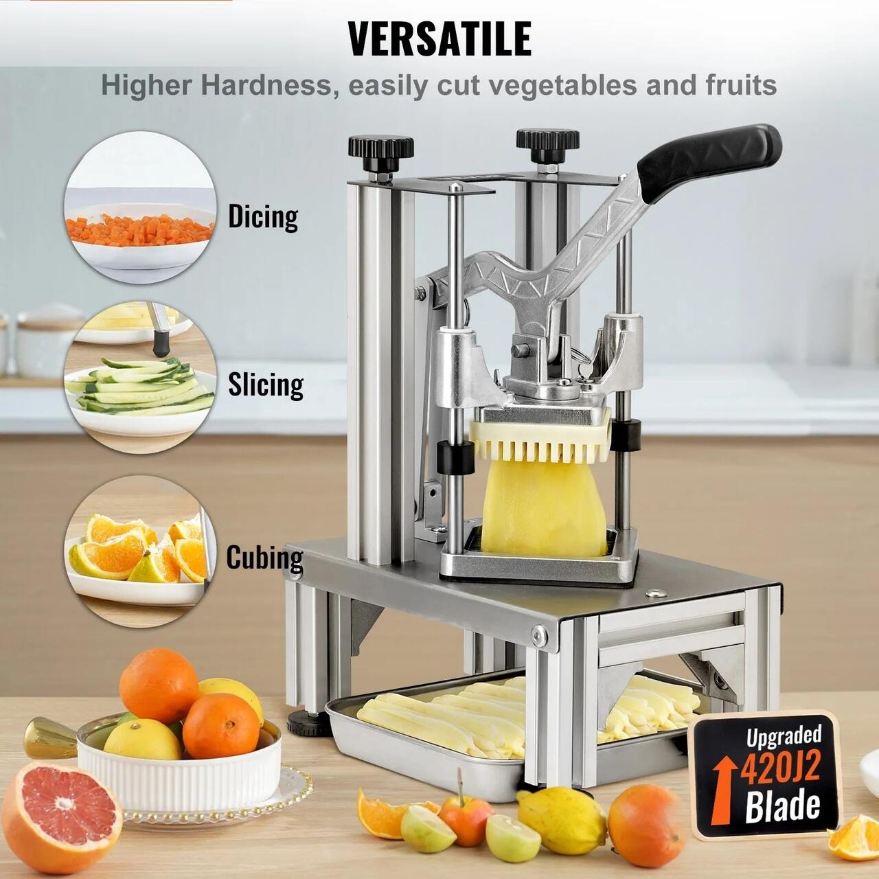 Tocator multifunctional pentru legume si fructe: tocatorul de mare rezistenta este foarte potrivit pentru restaurante si bucatarii de acasa. Poate fi folosit pentru a taia cartofi, morcovi, castraveti, mere, pere si alte legume si fructe. Este ideal pentru cei care doresc sa pregateasca legume si fructe pentru salate, cartofi prajiti si deserturi convenabil si rapid.