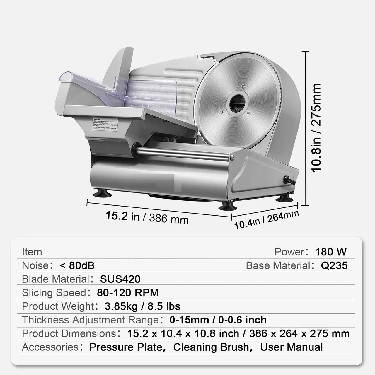 Grosime reglabila: Feliatorul de mezeluri dispune de un buton de reglare a grosimii cu o gama de la 0 la 15 mm (0 - 0,6 inci). Puteti personaliza cu usurinta grosimea pentru a satisface nevoile dvs. de preparare, perfect pentru prepararea hamburgerilor, sandvisurilor, mezelurilor, platourilor cu fructe si multe altele.