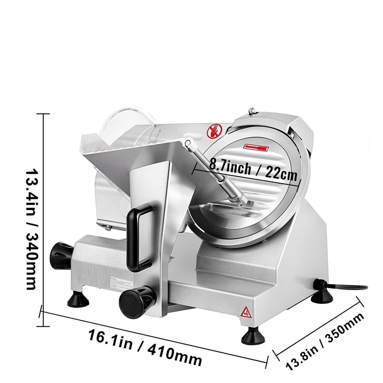 Lama de 8 inchi: masina noastra de taiat carne este echipata cu o lama imbunatatita de 8 inchi latime de 45 # din otel carbon. Pastrati lama ascutita cu piatra de ascutit incorporata, manipuland fara efort o varietate de texturi alimentare, cum ar fi carnea congelata, branza, carnea cruda, carnea gatita, sunca si painea.