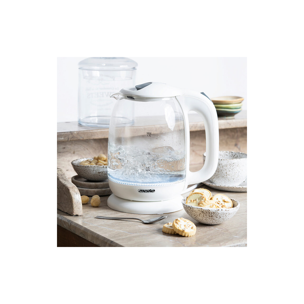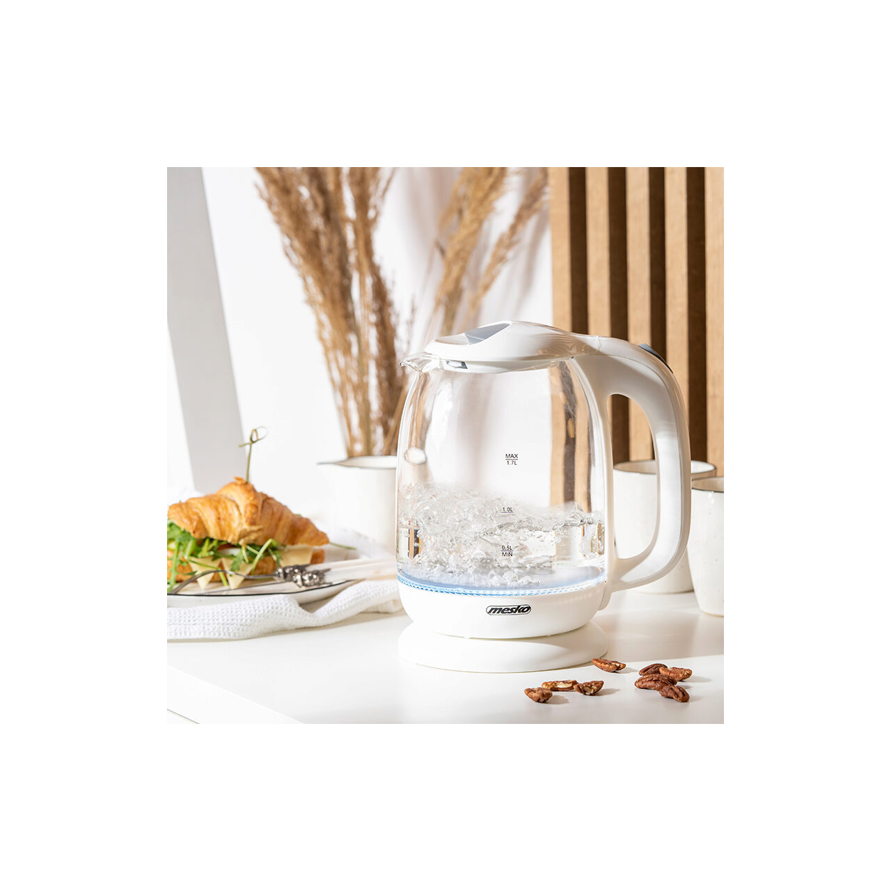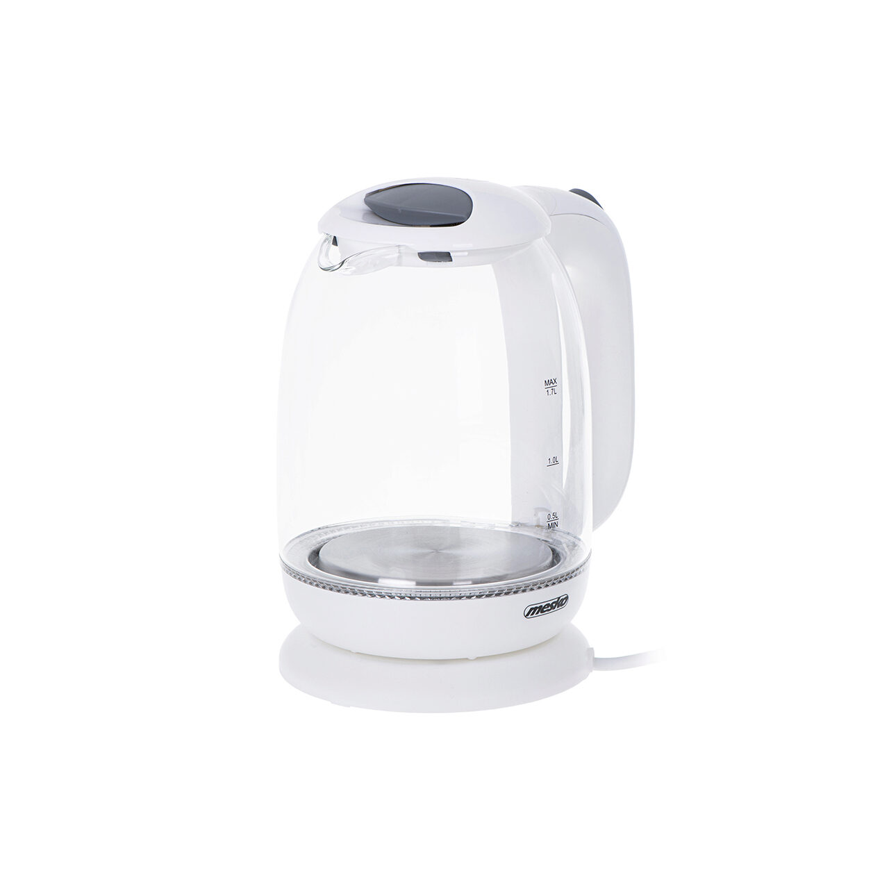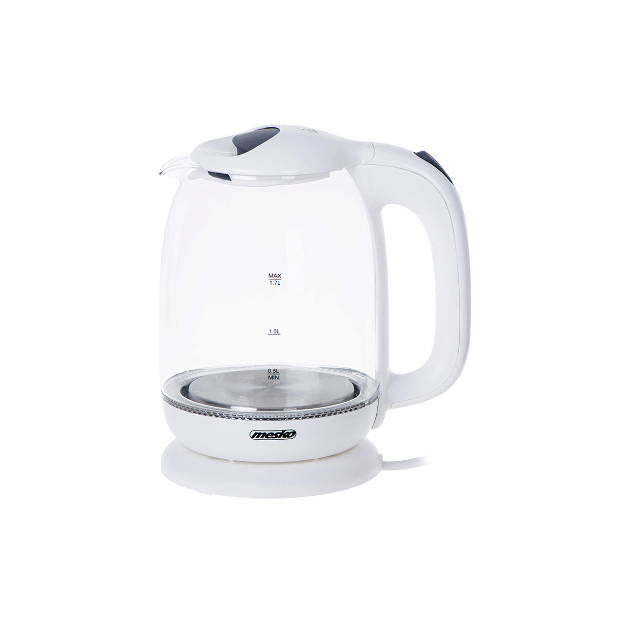 Fierbator electric cordless, Sticla, Alb, Capacitate 1.7 l, Putere 2200 W, Mentinere temperatura, Lumina colorata de fundal