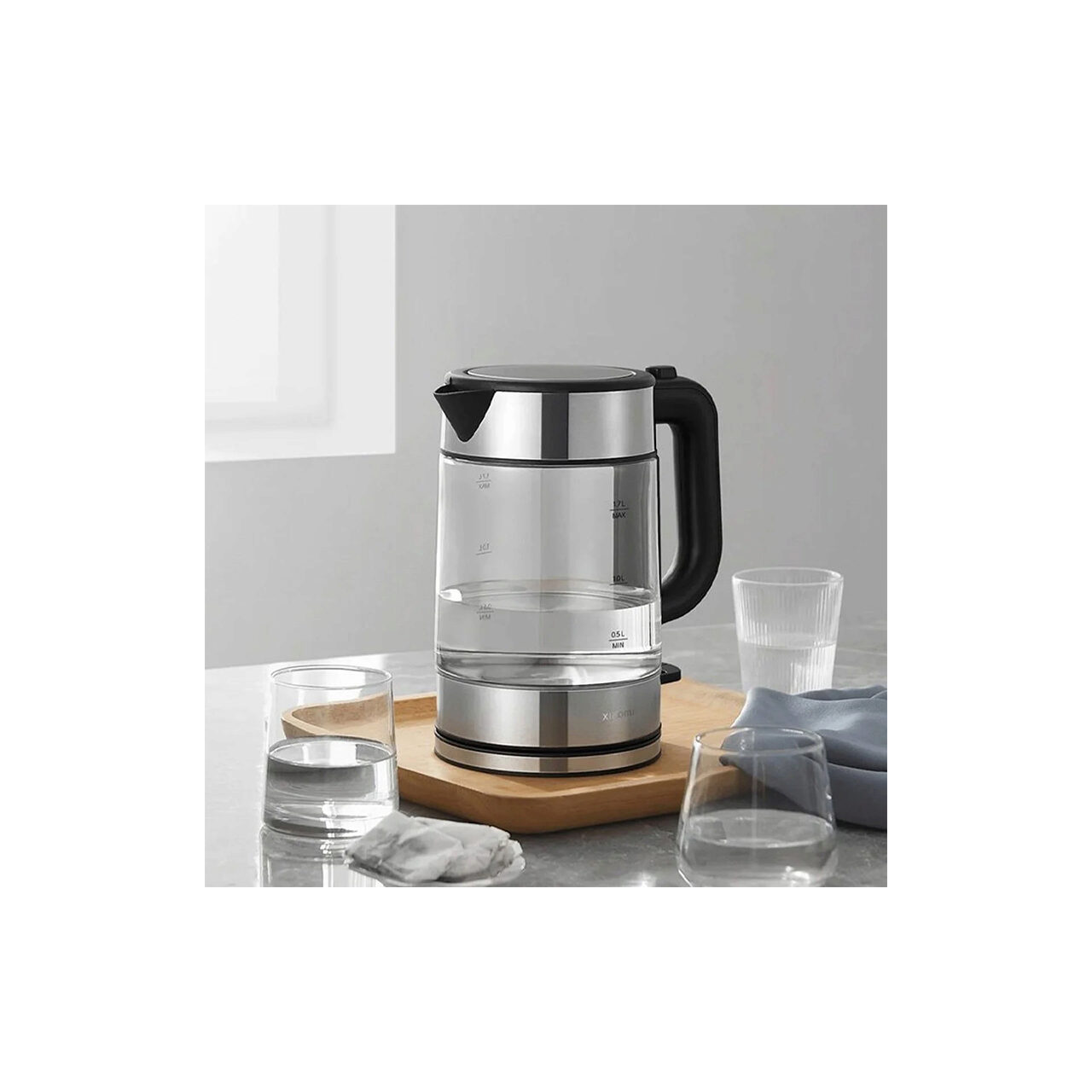 Fierbator electric inox/sticla, Xiaomi 2200 W, capacitate 1.7 l, filtru detasabil