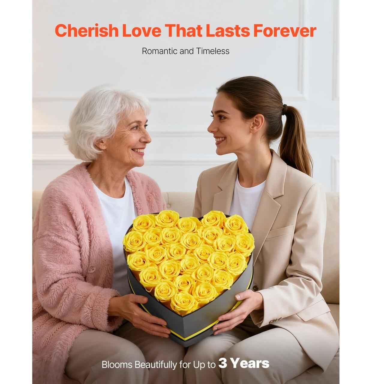 Flori Eterne - Frumusete Durabila: Conservarea avansata mentine trandafirii conservati proaspeti si colorati pana la 3 ani, sustinuta de un design stabil care evita deformarea si mentine o eleganta de lunga durata.