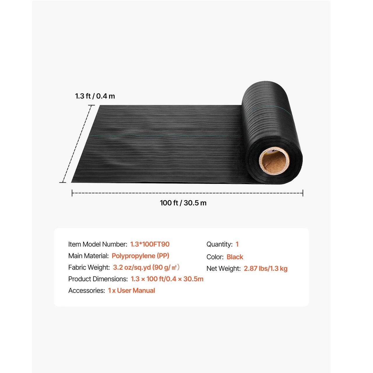 Geotextil de inalta densitate 90 g/m², contra buruienilor, 0.4 x 30.5 m, Negru