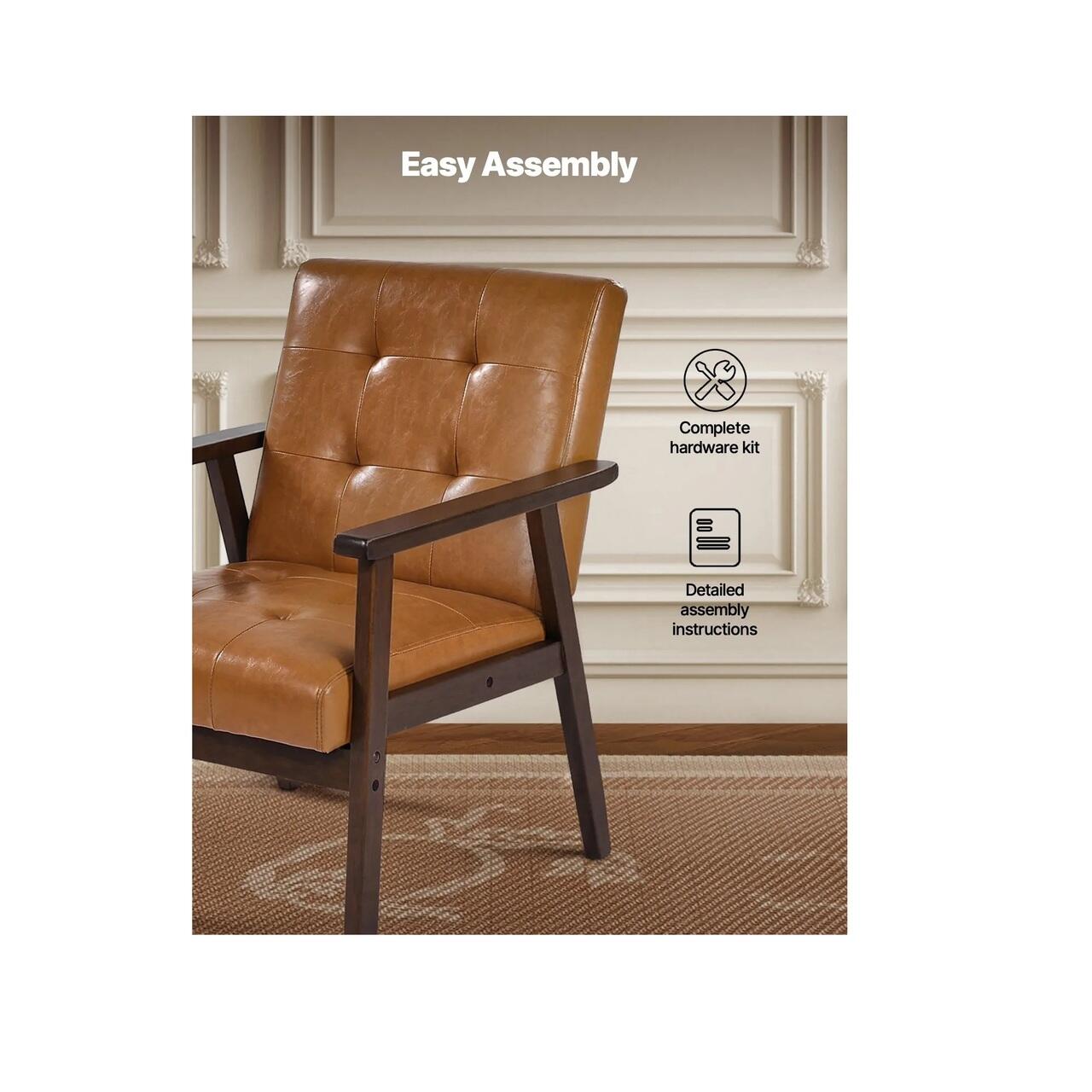 Asamblare si intretinere usoara: Acest fotoliu din lemn are toate piesele necesare si instructiuni detaliate de asamblare, ceea ce face ca procesul de instalare sa fie simplu. Materialul din piele rezistent la apa si umezeala este usor de curatat, ceea ce face ca intretinerea sa fie fara efort.