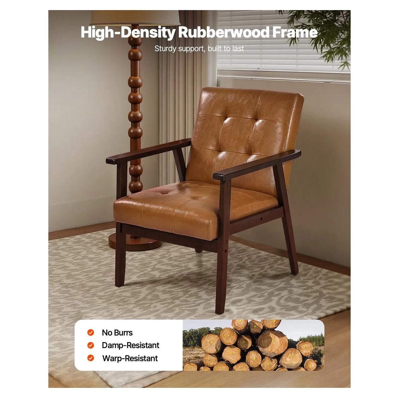 Robust si durabil: Acest fotoliu decorativ are o structura robusta din lemn de hevea, cu o suprafata neteda, fara bavuri. Picioarele inclinate ofera un suport si o stabilitate excelente, suportand pana la 150 kg. Scaunul are tampoane antiderapante pentru picioare pentru a asigura stabilitatea, a evita alunecarea si a reduce deteriorarea podelei.