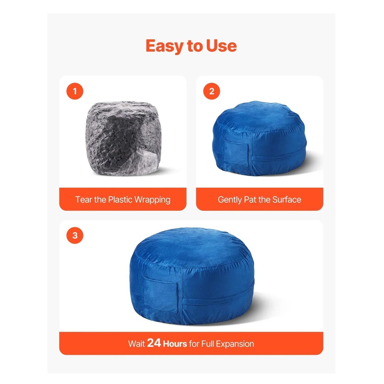 Versatil pentru orice camera: Perfect pentru camere de joaca, dormitoare sau zone de zi cu zi, acest fotoliu puf se integreaza perfect in orice camera, sporind atat frumusetea, cat si functionalitatea casei tale. Nu necesita asamblare - scoate-l pur si simplu din ambalajul comprimat si bucura-te de confort imediat!