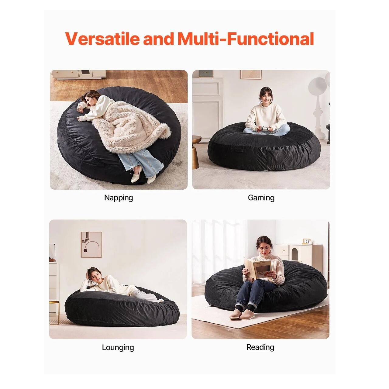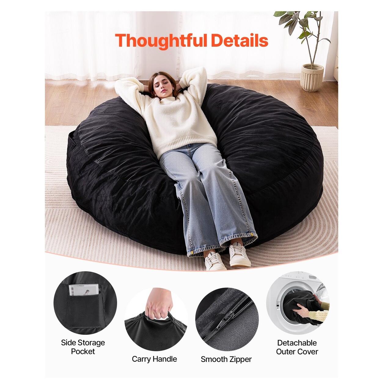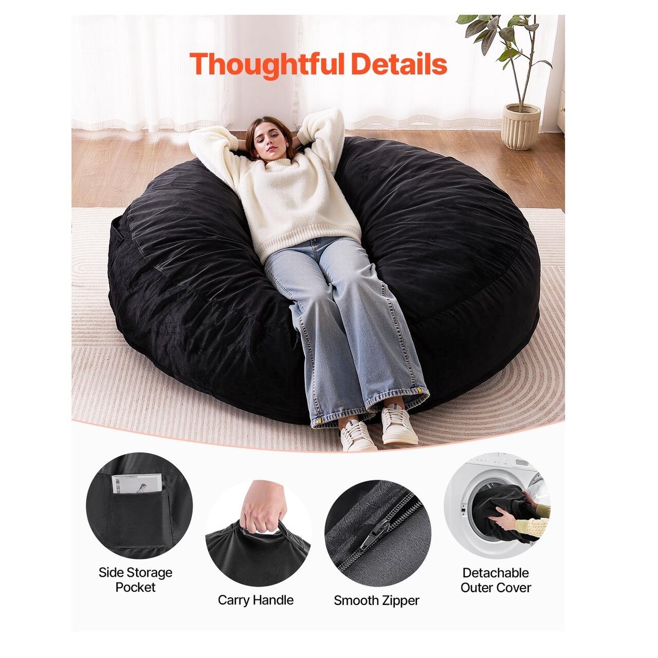 Fotoliu puf gigant, 1829 x 1829 x 508 mm, Husa detasabila si lavabila, Negru