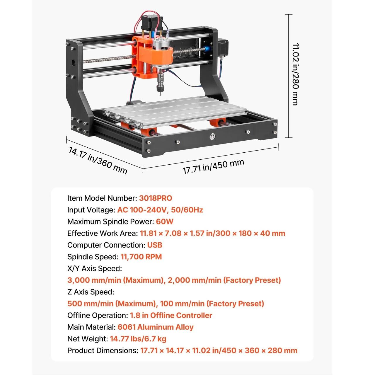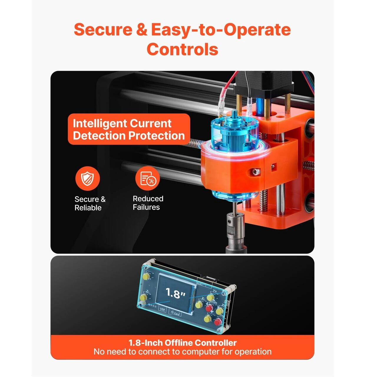 Asamblare si utilizare usoara: Instalare rapida cu instructiuni detaliate. Aceasta masina de frezat CNC este construita cu un controler offline de 1,8 inch, permitandu-va sa operati fara PC. Un buton rotativ ofera un control precis al axului pentru gravare fara efort.