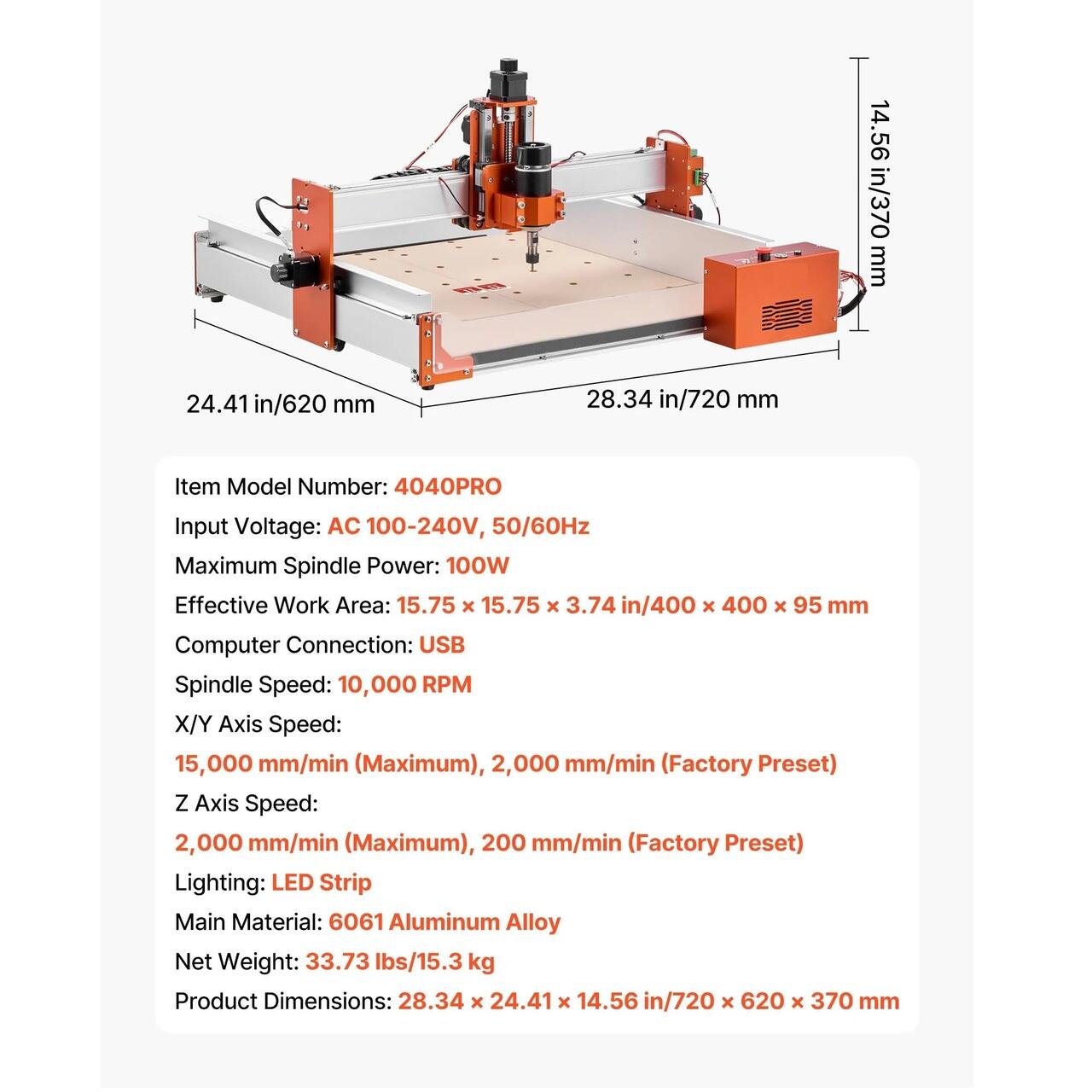 Asamblare si utilizare usoara: Componentele cheie sunt pre-asamblate si precablate pentru o configurare rapida. Aceasta masina de frezat CNC este construita cu iluminare LED pentru a reduce umbrele pe axa Z pentru o vizibilitate mai clara, in timp ce butonul rotativ ofera un control precis al axului cu usurinta.
