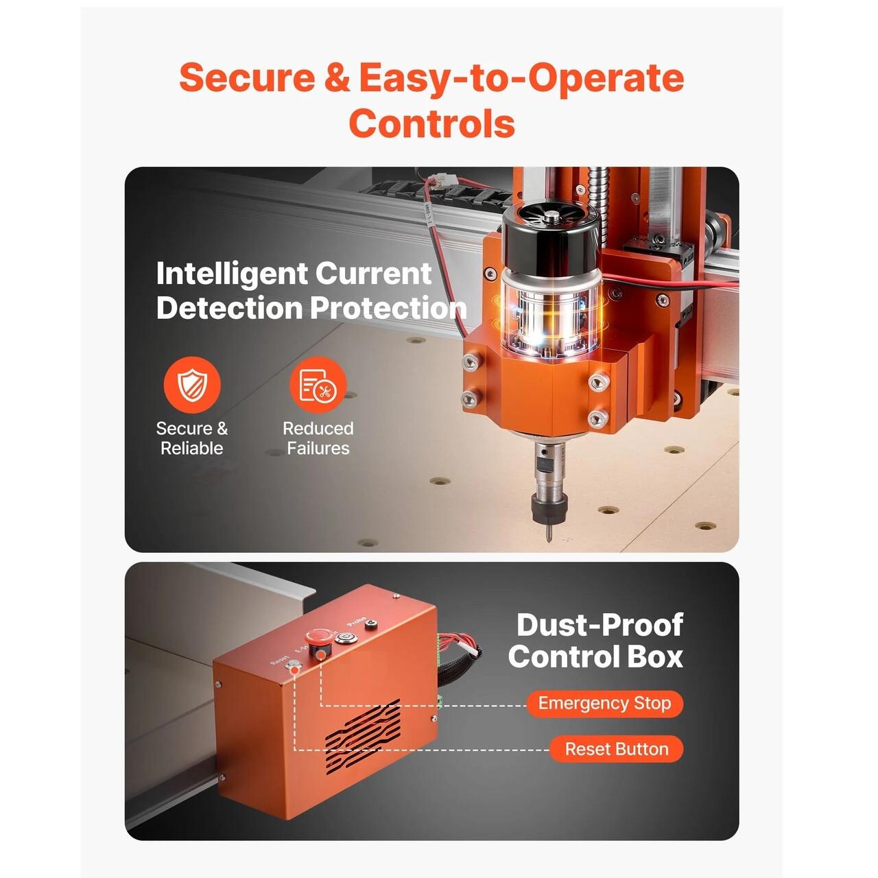 Constructie sigura si durabila: Avand un motor cu ax si protectie la detectarea curentului, aceasta masina CNC pentru lemn prelungeste durata de viata pana la 5.000 de ore. Aparatoarea de praf retine resturile, in timp ce cutia de control este dotata cu butoane de oprire de urgenta si butoane de pornire.