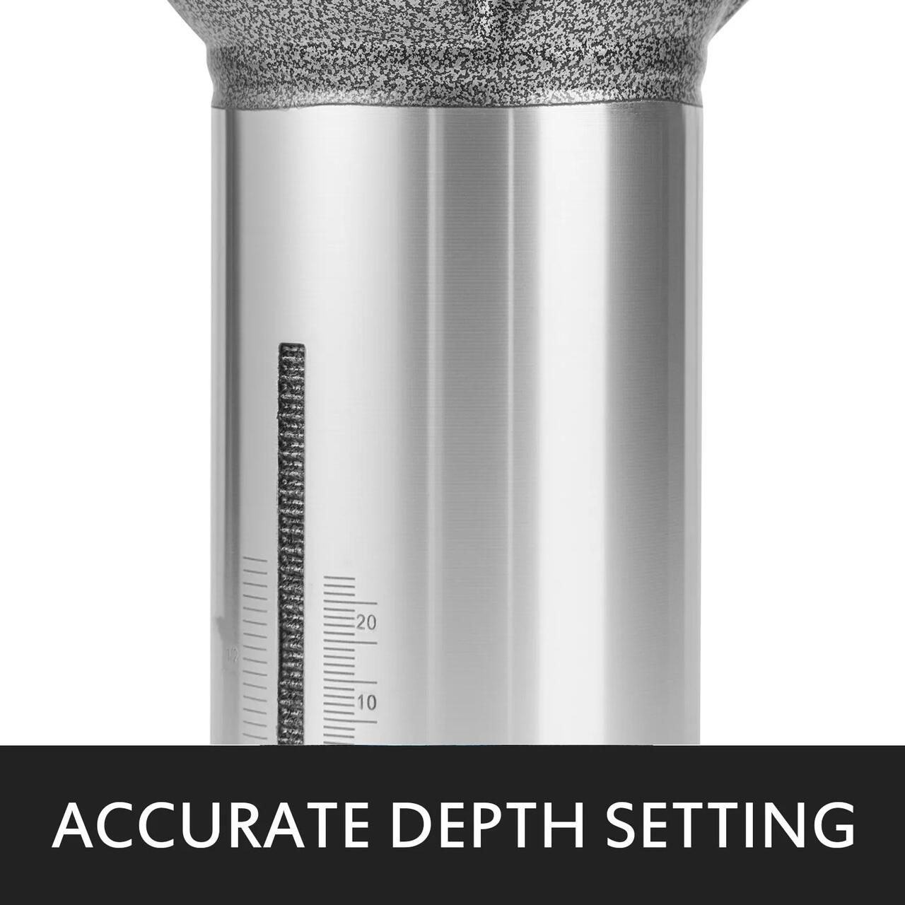 PRECIS SI PROCES- Control reglabil al adancimii cu cremaliera si pinion pentru taiere mai precisa. Scale de adancime gradate atat in inci, cat si in mm, usor de citit. Sistem de blocare cu cama cu eliberare rapida pentru ajustari usoare ale adancimii si demontare/instalare a bazei.