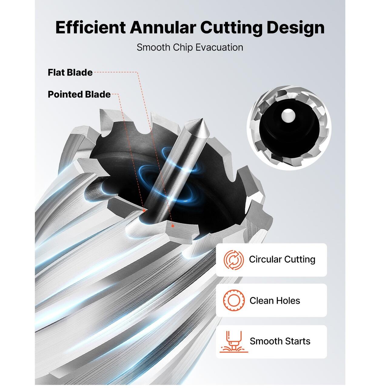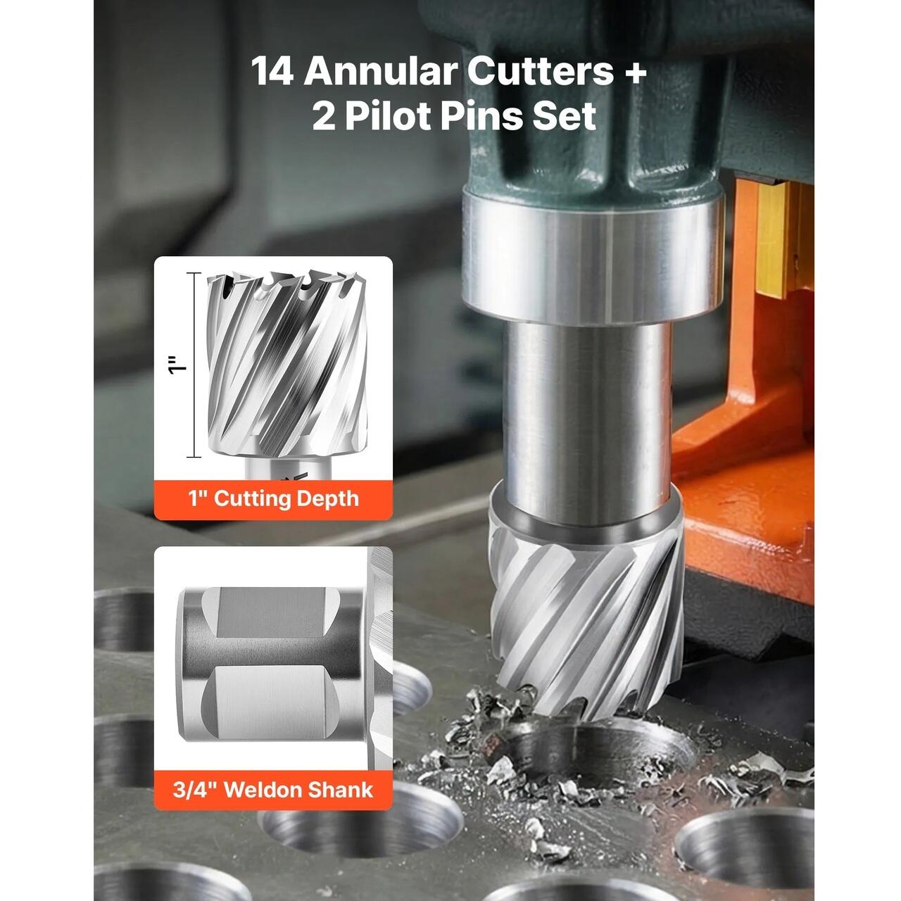 Coada Weldon de 3/4" pentru compatibilitate larga cu scule: Aceste burghie inelare au o coada Weldon standard de 3/4", compatibila cu majoritatea burghielor magnetice care utilizeaza cleme Weldon. Usor de instalat si detasat in timpul schimbarilor de rutina ale sculelor.