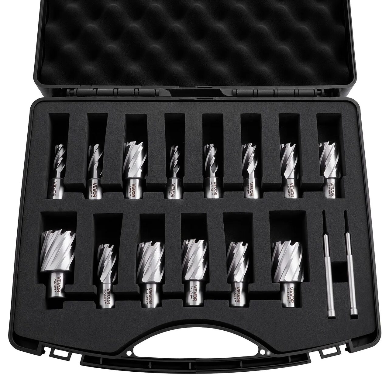 Set de 16 freze pentru gaurire zilnica: Burghiele noastre magnetice includ 14 freze (7/16", 1/2", 9/16", 11/16", 5/8", 3/4", 13/16", 7/8", 15/16", 1", 1-1/16", 1-1/8", 1-1/4", 1-3/8"), doua stifturi pilot de 1/4" x 4", plus o cutie de depozitare pentru organizare.