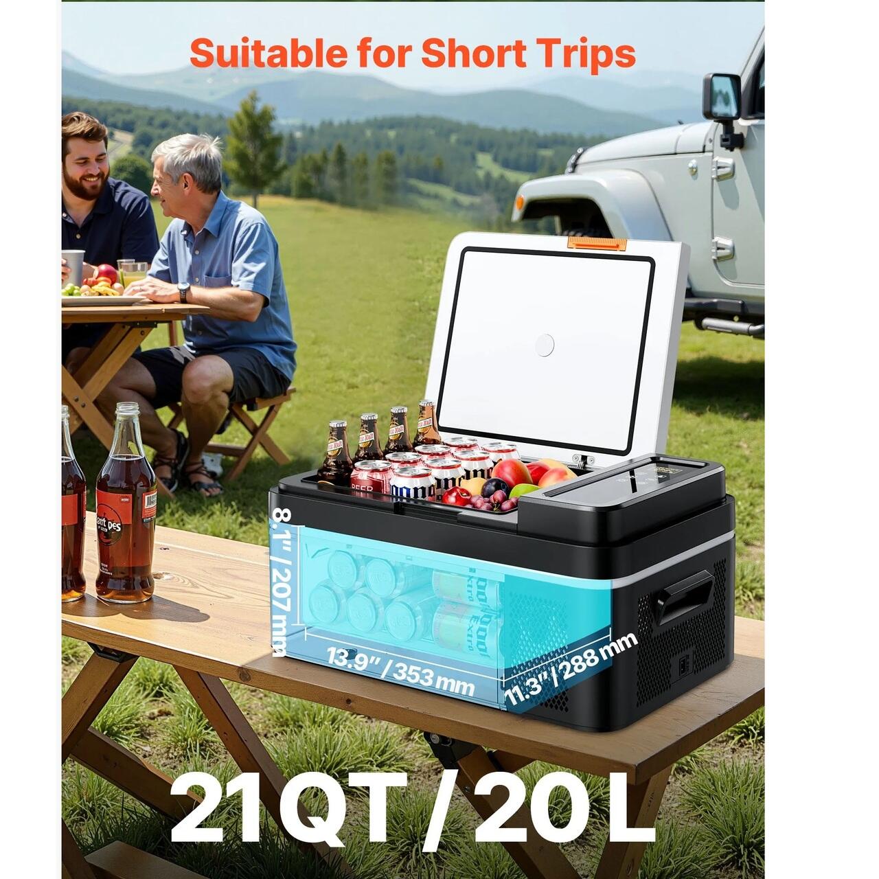 Utilizare versatila in exterior: Dimensiunea compacta de 21 de litri/20 litri permite amplasarea usoara a unui frigider de camion in portbagaj, in spatele scaunelor sau pe platforma camionului. Sistemul de compresor de 12 V este pregatit pentru utilizare in exterior pe teren accidentat sau in panta, potrivit pentru calatorii cu rulota, campinguri, barci, camping, pescuit si calatorii lungi pe sosea.