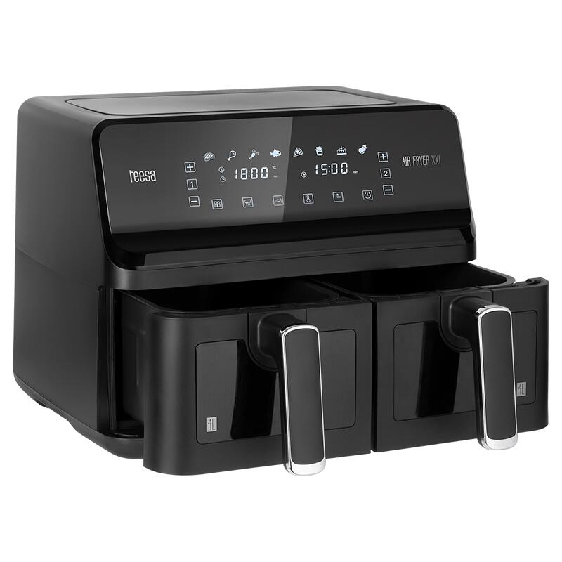 Friteuza dubla Airfryer, 8 l, putere 2700 W, Ecran tactil, Temporizator, 8 programe