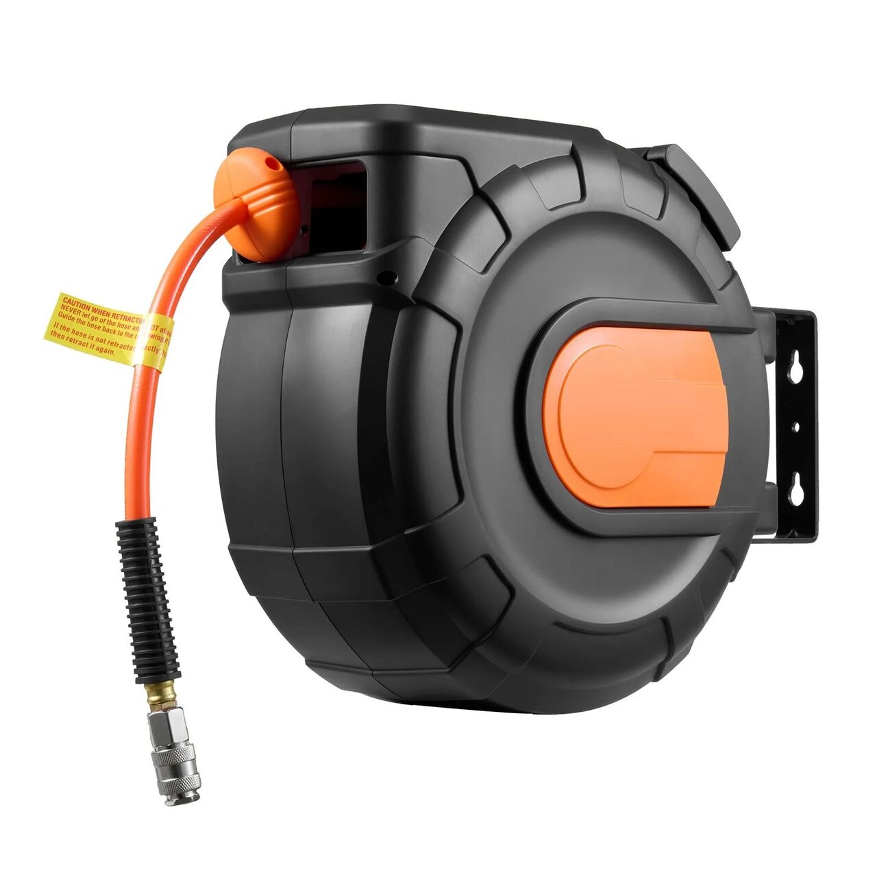 Gata cu furtunurile incurcate: Tamburul retractabil pentru furtunul de aer include un furtun de aer din PVC de 20 m x 9,5 mm si un furtun de intrare de 2 m pentru a va mentine spatiul de lucru curat si fara incurcaturi. Gata cu furtunurile care se mai tarasc pe podea, reducand uzura si riscurile de impiedicare pentru o utilizare mai sigura.