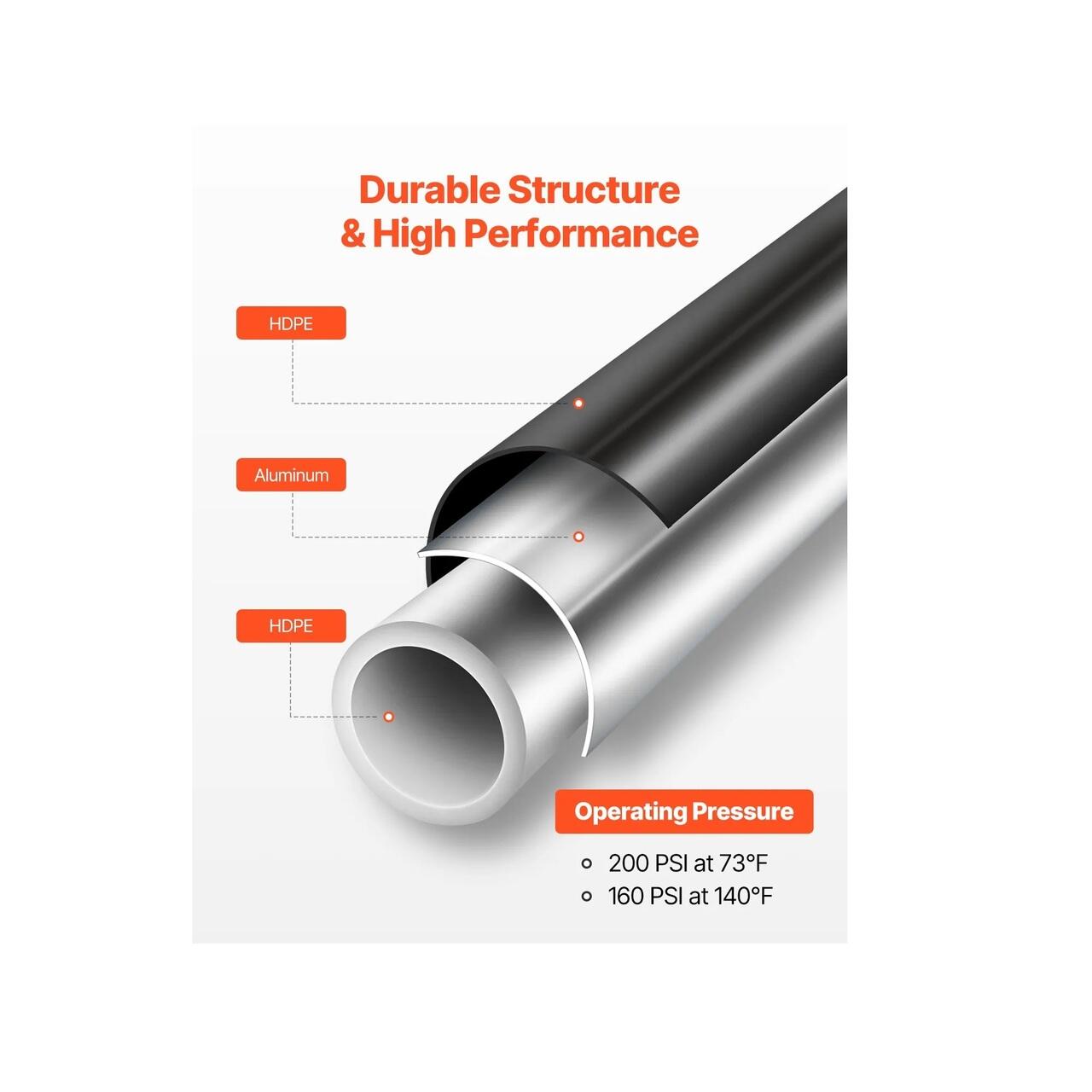 Durabilitate in trei straturi: Proiectat cu o structura durabila in trei straturi din HDPE-aluminiu-HDPE, kitul nostru de compresor de aer de 60 m x 1,8 cm ofera o rezistenta remarcabila la coroziune si fisuri, precum si rezistenta necesara pentru a rezista la presiuni ridicate. Acesta asigura un flux de aer fiabil si eficient, perfect pentru utilizarea in fabrica si atelier.