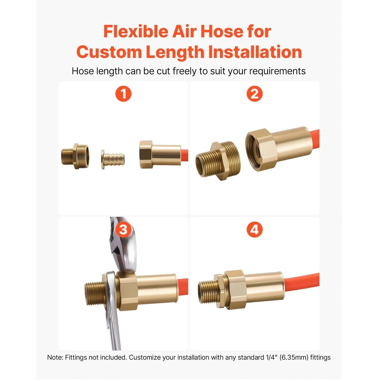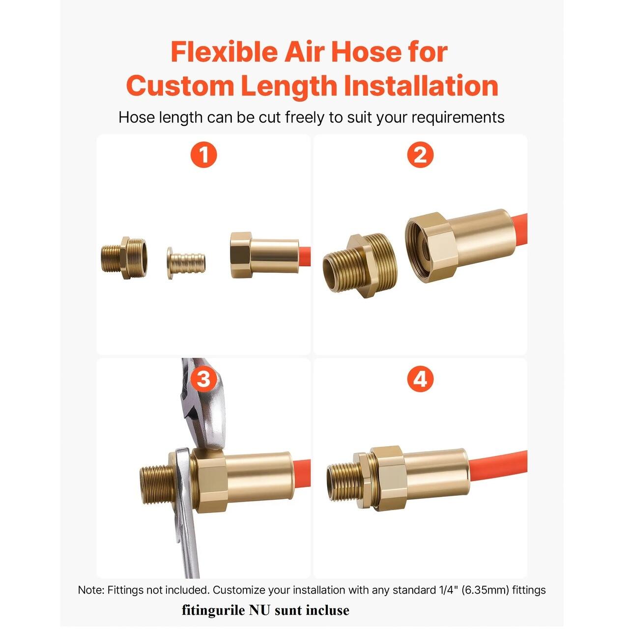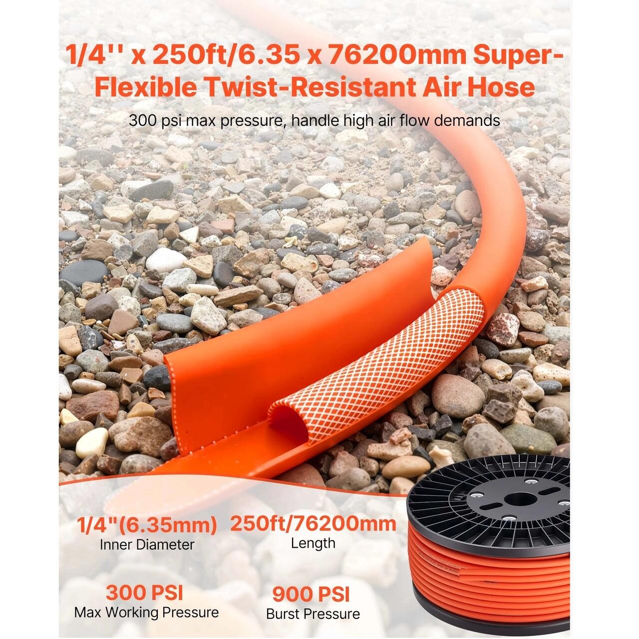 Furtun de 1/4 in x 76 m: Furtunul nostru pneumatic ofera un control mai bun si o flexibilitate mai mare decat furtunurile standard ale compresorului de aer. Este usor, asigurand o utilizare usoara in orice moment.