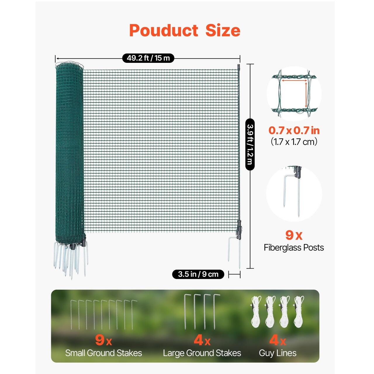 Structura de sustinere stabila: Prezinta 9 stalpi de sustinere din fibra de sticla cu tarusi de sol cu ​​tepi dubli, plus 4 cabluri de ancorare, 9 tarusi de sol mici si 4 tarusi de sol mari pentru a imbunatati rezistenta generala la vant, mentinand acest gard de siguranta temporar ferm la locul lui.