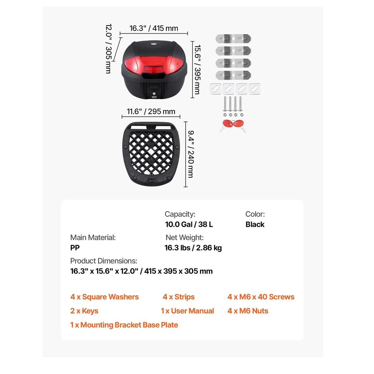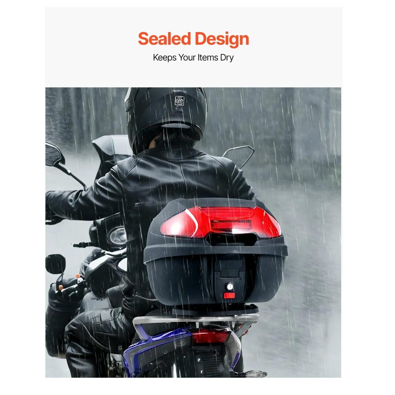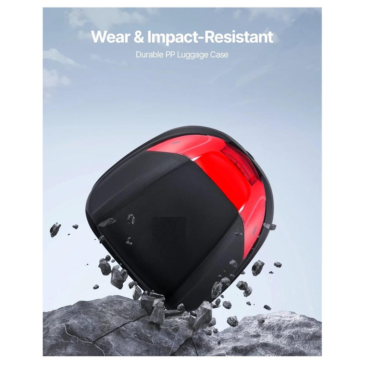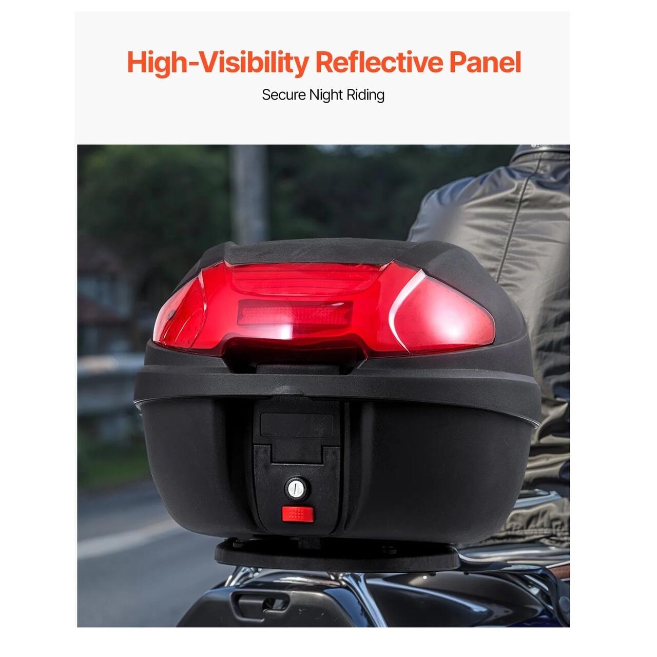 Capacitate mare de 38 l: Cutia spate pentru motocicleta de 38 l ofera suficient spatiu pentru o casca completa, un rucsac mic, manusi, o umbrela si echipament de ploaie, ideala pentru naveta zilnica sau plimbari pe distante scurte. Este dotata cu o incuietoare de securitate robusta din aliaj de zinc pentru o protectie suplimentara impotriva furtului.