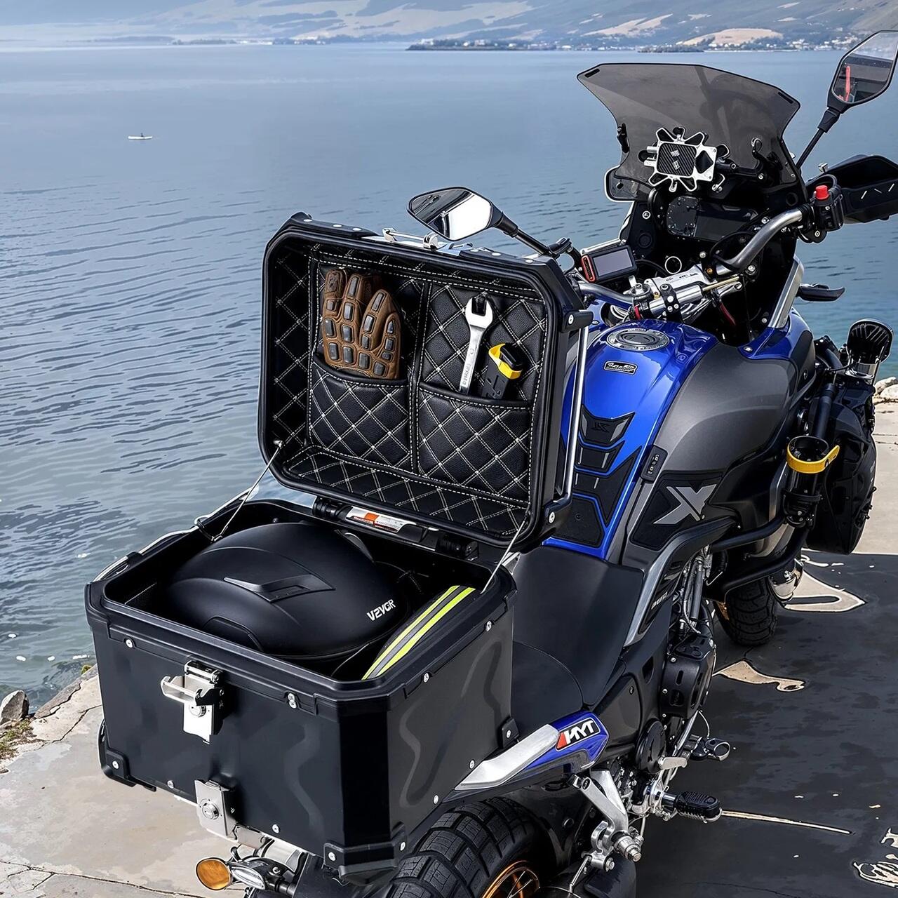 Capacitate mare de 55 l: Cu o capacitate generoasa de 55 l, acest portbagaj pentru motocicleta poate gazdui o casca mare, o jacheta de motocicleta de marime medie, o sticla de apa, o umbrela, manusi, un impermeabil, o trusa de scule sau chiar un laptop. Spatiul amplu de depozitare este esential pentru calatoriile lungi, iar incuietoarea sigura din otel inoxidabil evita furtul. Incearca portbagajul nostru mare pentru motocicleta!