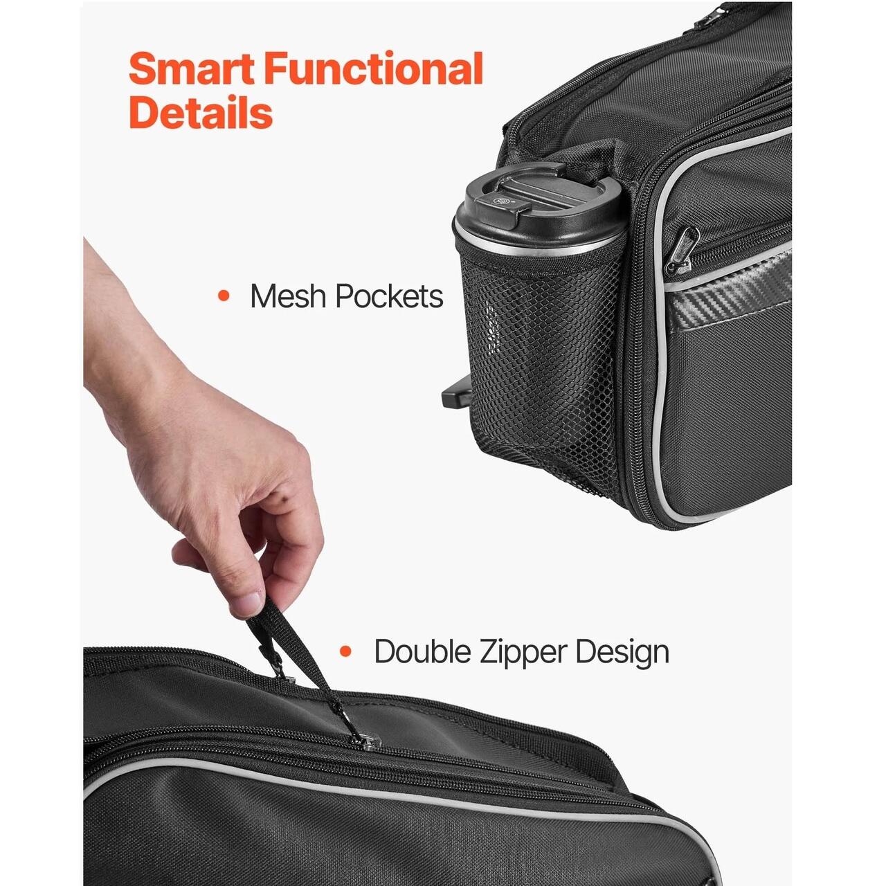 Design practic: Geanta impermeabila pentru motocicleta are benzi reflectorizante pentru o vizibilitate mai buna pe timp de noapte si siguranta pentru motociclist. Fermoarele premium se deschid usor, cu fermoare laterale duble care permit deschiderea simultana a ambelor compartimente.