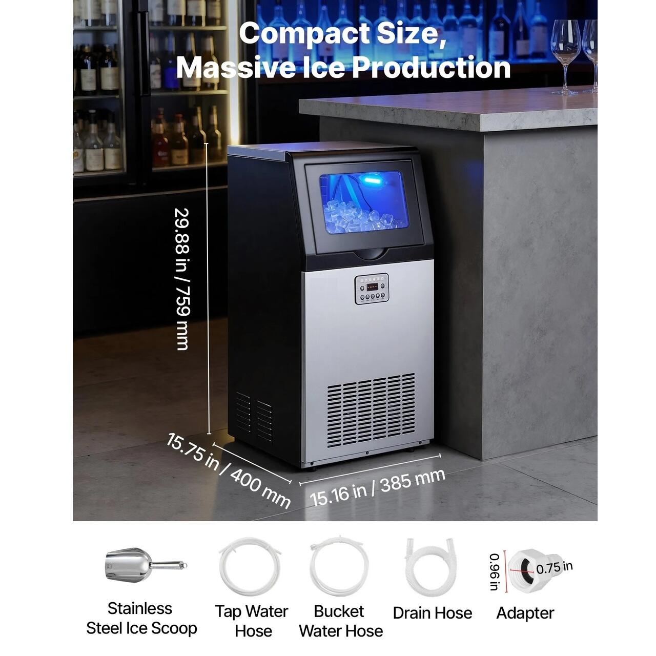 Productie eficienta de gheata cu spatiu mare de stocare: Acest aparat de gheata comercial produce pana la 59 kg de gheata pe zi si face 36 de cuburi de gheata in 8-10 minute, cu un recipient de gheata de 13,6 kg, potrivit pentru prepararea a aproximativ 600+ bauturi pe zi si sustine o functionare rapida si eficienta.