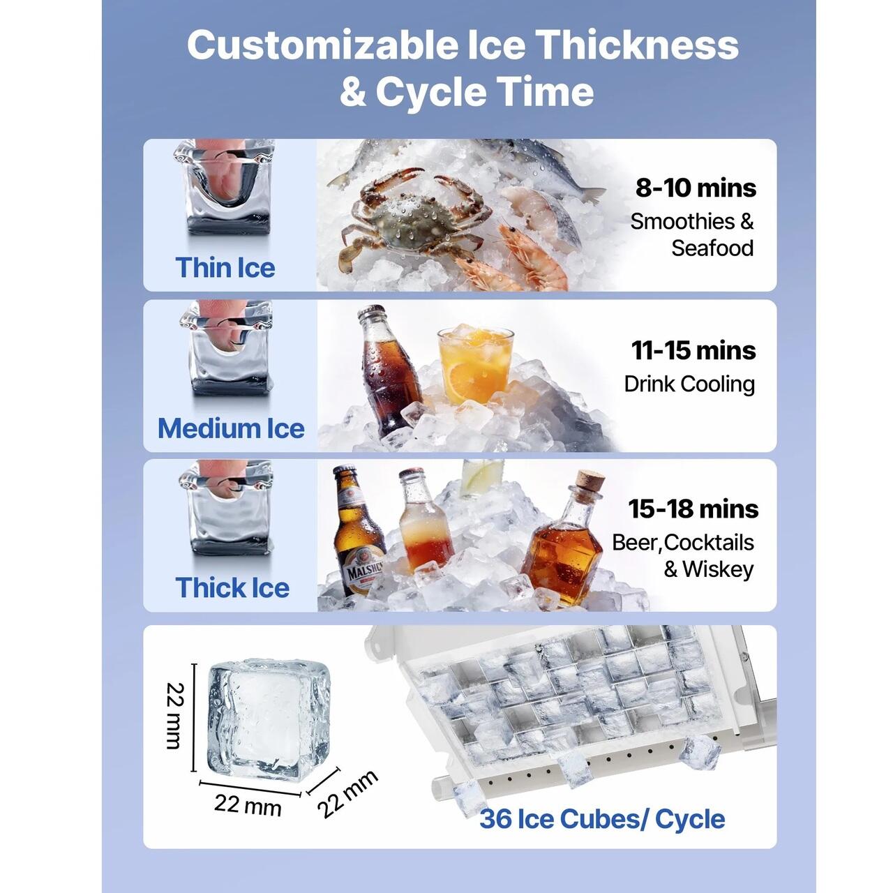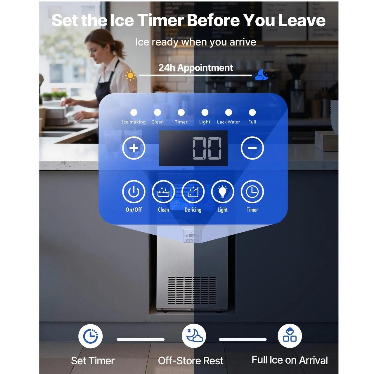 Control inteligent si utilizare usoara: Panoul LED arata temperatura ambientala si ofera grosime reglabila a ghetii, cronometru, curatare cu o singura atingere, plus alerte pentru nivel ridicat de gheata/nivel scazut de apa/eroare. Capac rabatabil pentru acces facil, cu o lingura durabila din otel inoxidabil inclusa.