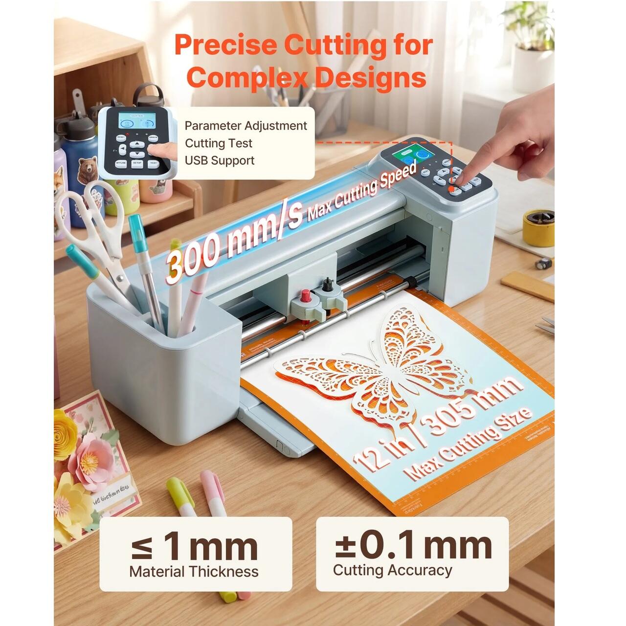 Functioneaza cu diverse materiale pentru bricolaj de zi cu zi: Aceasta masina de taiat cu plotter de vinil este conceputa pentru a manipula vinil, hartie de transfer termic, carton, folie, hartie speciala etc. Ideala pentru autocolante, pahare, imbracaminte, felicitari, decoratiuni si cadouri lucrate manual.