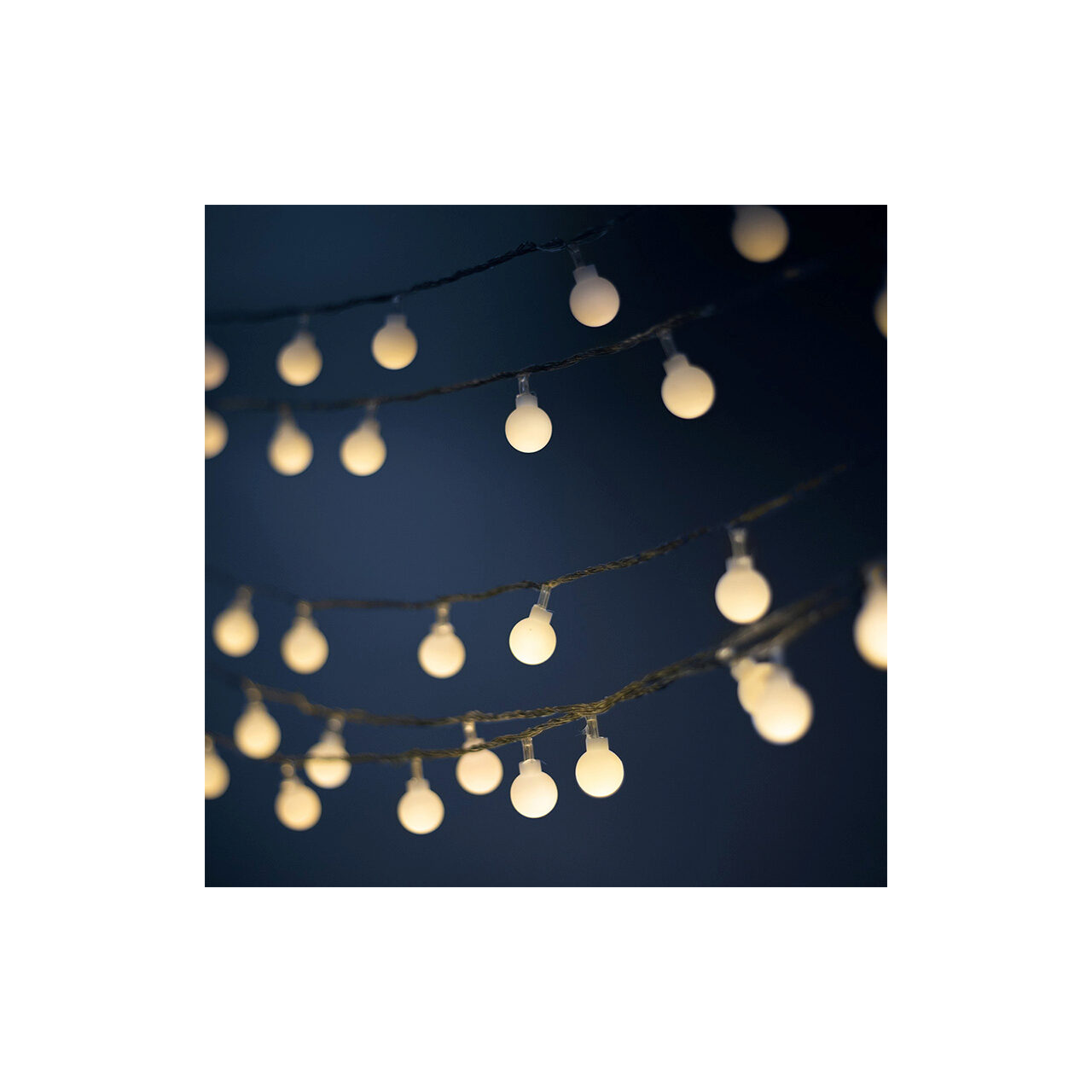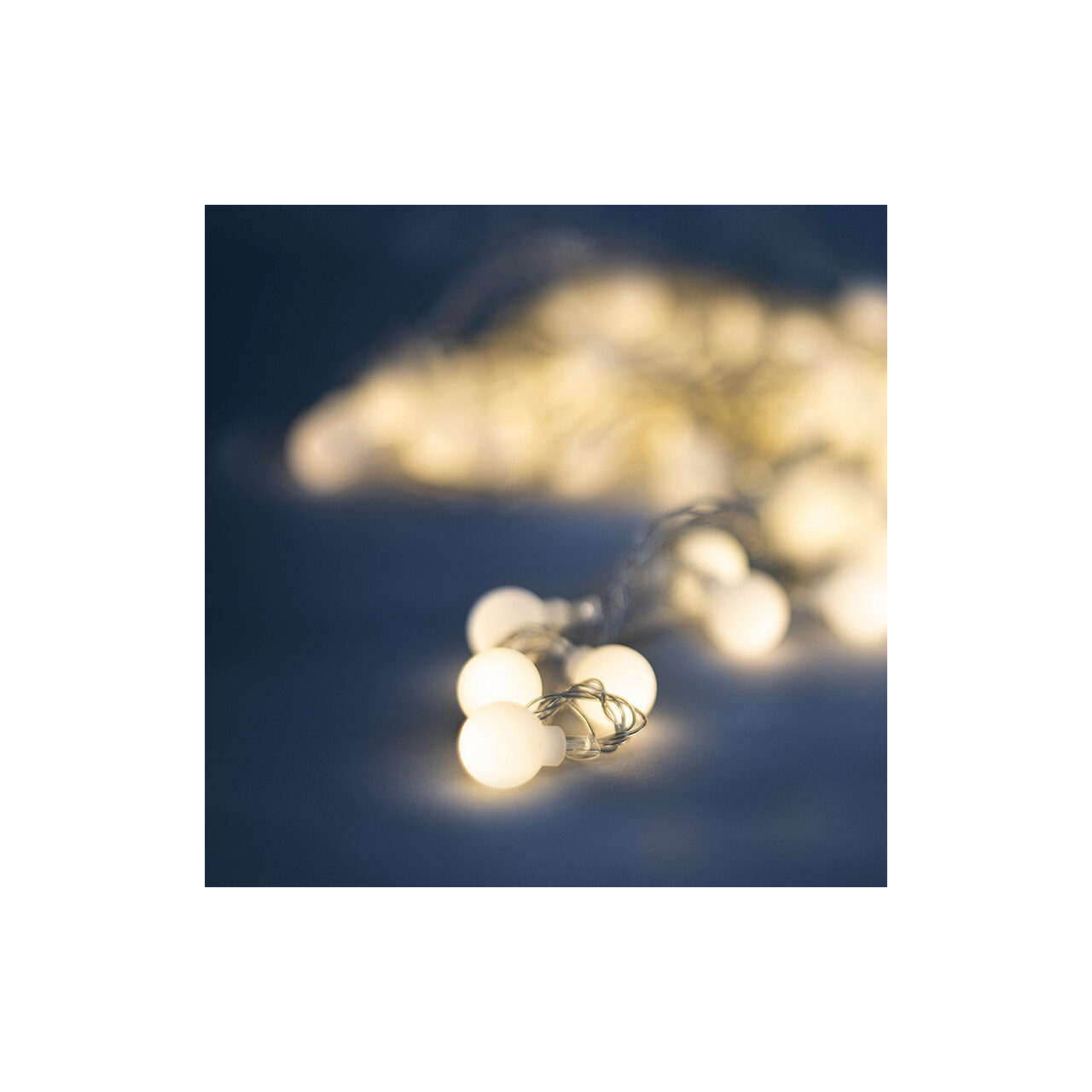 Un sir de lumina cu LED-uri si un capac din bile mate este un element unic al amenajarii. Bilele mate emit o lumina alba placuta creand o atmosfera unica. Datorita etanseitatii IP65, lantul luminos poate fi montat in exterior.