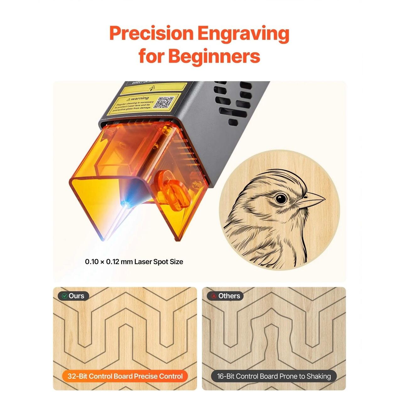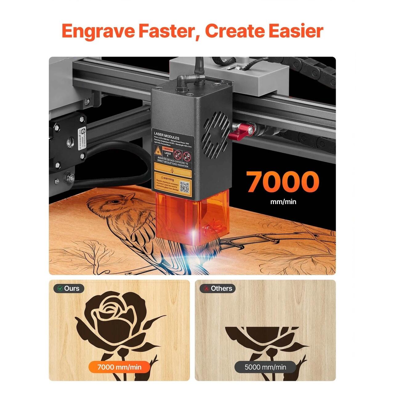 Gravura de inalta precizie: Avand o lungime de unda laser de 455 nm si o dimensiune fina a spotului laser de 0,10 x 0,12 mm, aceasta masina de gravat cu laser este asociata cu o placa de control pe 32 de biti pentru un control precis. Rama din aluminiu minimizeaza vibratiile pentru margini netede.