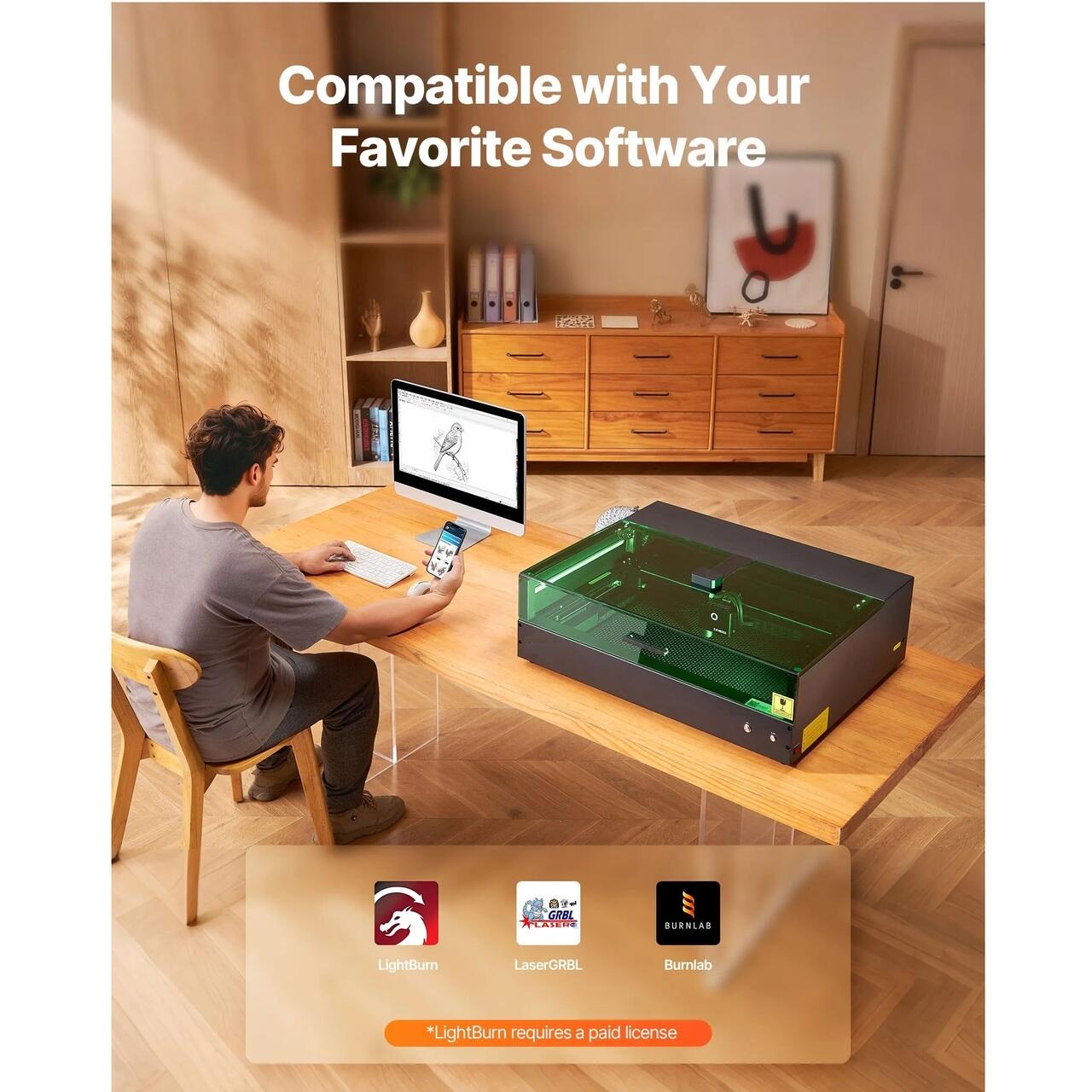 Compatibilitate software usoara: Aceasta masina de gravat cu laser este compatibila cu LaserGRBL (Windows, doar pentru dispozitive cu viteza redusa), LightBurn (Mac OS/Windows, platit) si Burnlab. Ideala pentru incepatori, pasionati de bricolaj si studiouri mici.
