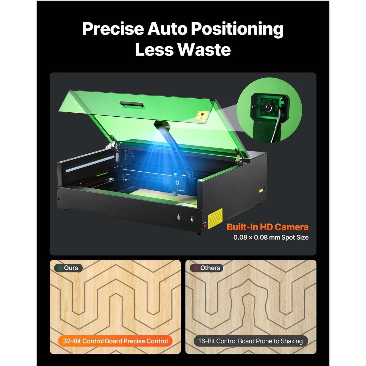 Pozitionare automata: Dispune de o lungime de unda laser de 455 nm, o dimensiune a spotului laser de 0,08 x 0,08 mm, o placa de control pe 32 de biti si un cadru din aluminiu. Aceasta masina de gravat cu laser permite un control precis si margini netede. Creste semnificativ eficienta cu pozitionarea automata.