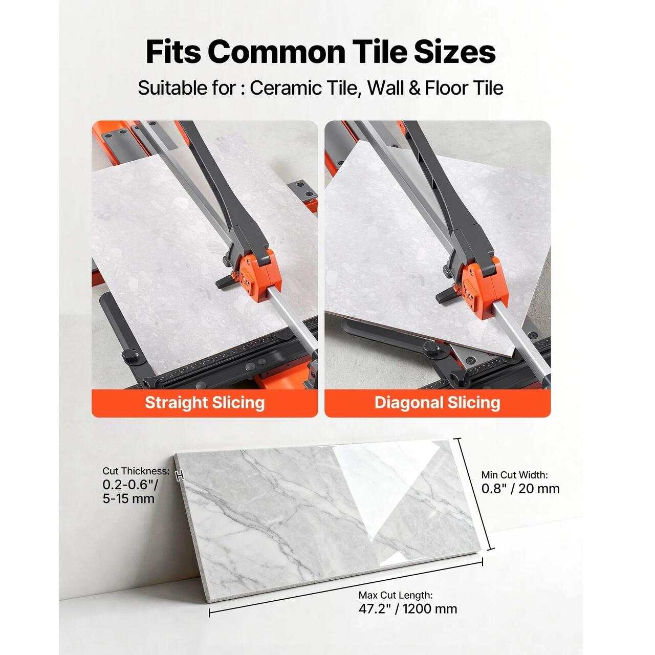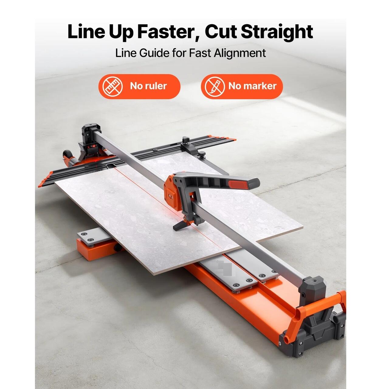 Aliniere rapida, taieturi precise: Aliniati taieturile mai rapid cu ghidajul de linie vizibil incorporat. Cutterul pentru placi de faianta va ajuta sa ramaneti pe linie fara rigla sau creion de marcat, reducand timpul de configurare si facand taieturile drepte mai usoare si mai uniforme.