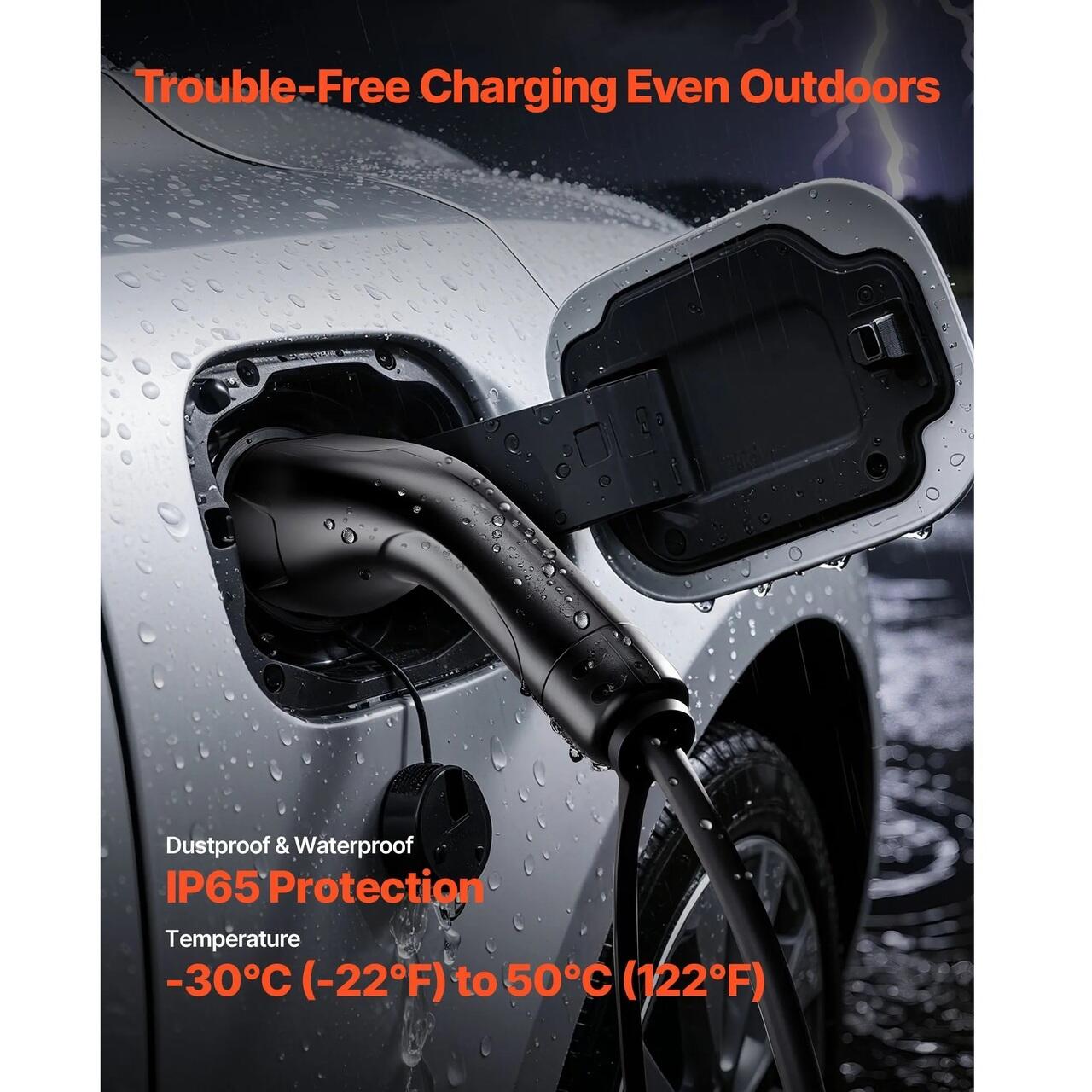 Construit pentru a face fata conditiilor reale: Acest cablu de incarcare prelungitor pentru vehicule electrice este fabricat din materiale rezistente la foc si are protectie impermeabila IP65. Functioneaza in siguranta de la -22 (-30) la 122 (50), indiferent de ploaie sau soare, vara sau iarna.