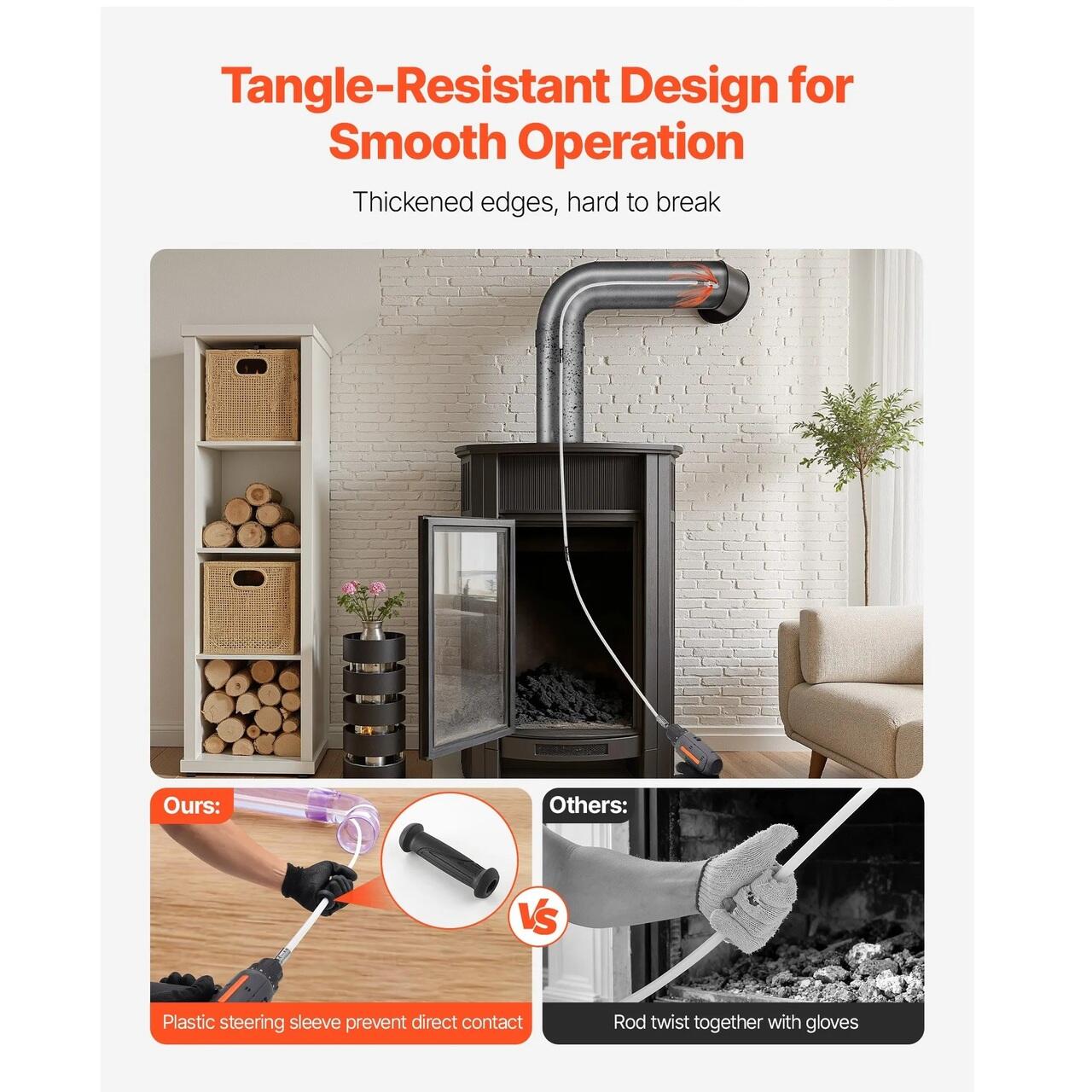 Curatare eficienta si sigura: Dotat cu un conector pivotant din plastic, acest cos de fum evita contactul direct cu tija, asigurand o siguranta sporita. Metoda de curatare de jos in sus elimina creozotul si resturile, imbunatatind eficienta semineului, reducand consumul de combustibil si reducand semnificativ riscul de incendiu.