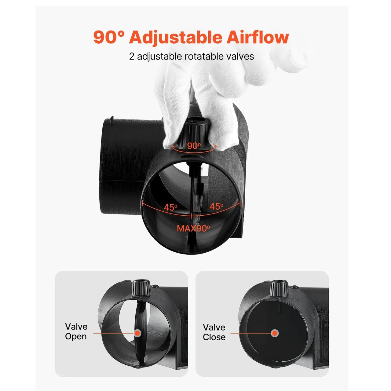 Controler flexibil al fluxului de aer: Accesoriile pentru conectorii conductei de incalzire diesel au o iesire in forma de T cu valve reglabile la 90°. Acest design directioneaza eficient fluxul de aer si va permite sa selectati cu usurinta pozitia de iesire pentru un control mai bun al incalzirii in diverse setari.