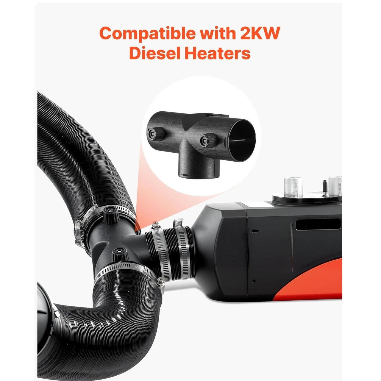 Compatibilitate larga: Conectorul de ventilatie cu 3 cai in forma de T este conceput ca un inlocuitor fiabil pentru majoritatea incalzitoarelor diesel. Acesta sustine o distributie eficienta a fluxului de aer si este construit pentru diverse configuratii de incalzire. Va rugam sa confirmati compatibilitatea cu modelul dvs. inainte de cumparare.