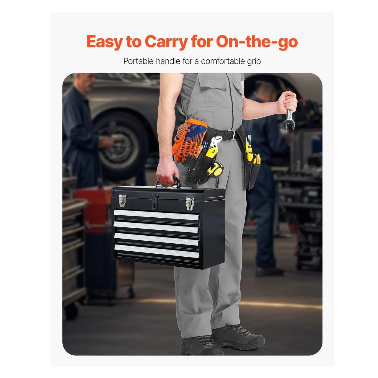 Portabila si usor de transportat: Cu un maner superior convenabil, cutia de scule cu sertar este usor de transportat chiar si atunci cand este plina de scule. Sistemul de blocare automata asigura siguranta obiectelor in timpul transportului, evitand orice scurgeri accidentale si mentinandu-va organizati in timpul deplasarii.