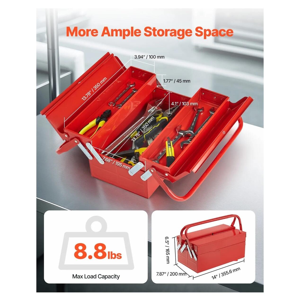 Cutie pentru scule pliabila, 3 tavi/2 niveluri, Rosie, 355.6 x 200 x 165 mm