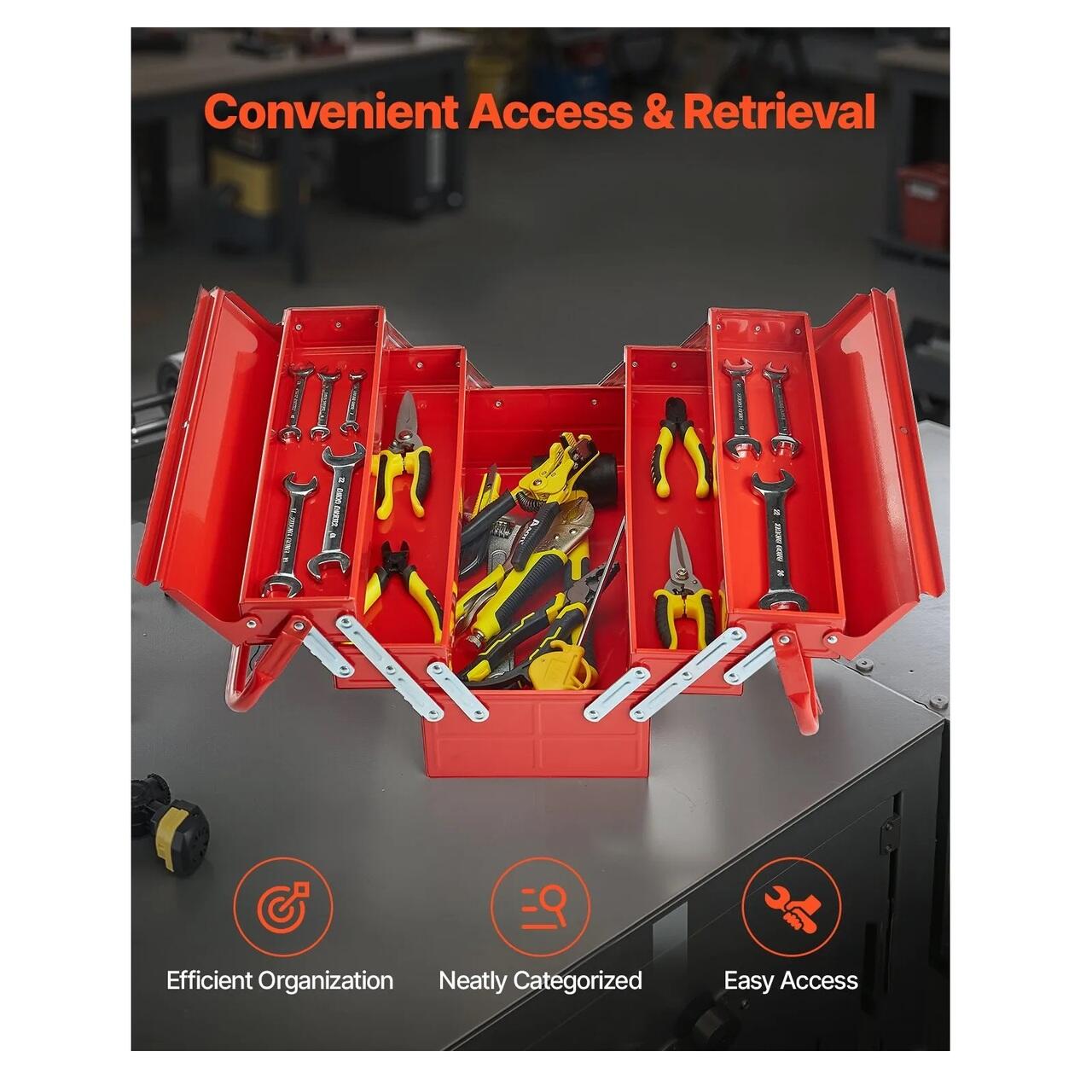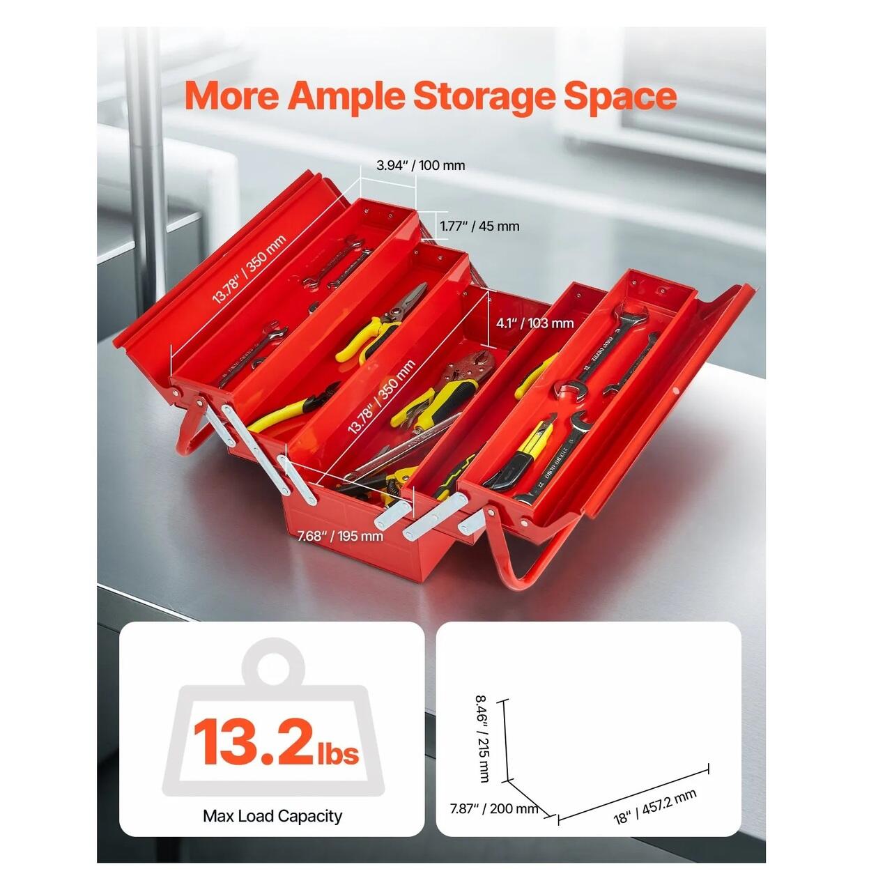 Cutie pentru scule pliabila, 5 tavi/3 niveluri, Rosie, 457.2 x 200 x 215 mm