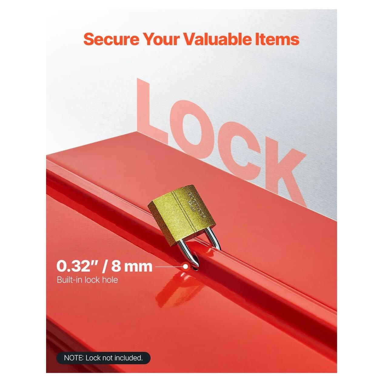 Securitate sporita: Trusa de scule cu consola are un orificiu de blocare incorporat in partea superioara, permitandu-va sa adaugati un lacat pentru securitate suplimentara. Acest lucru ajuta la securizarea obiectelor de valoare si la evitarea furtului. (Nota: Orificiul de blocare este compatibil cu un lacat de 0,32 inch, care nu este inclus.)