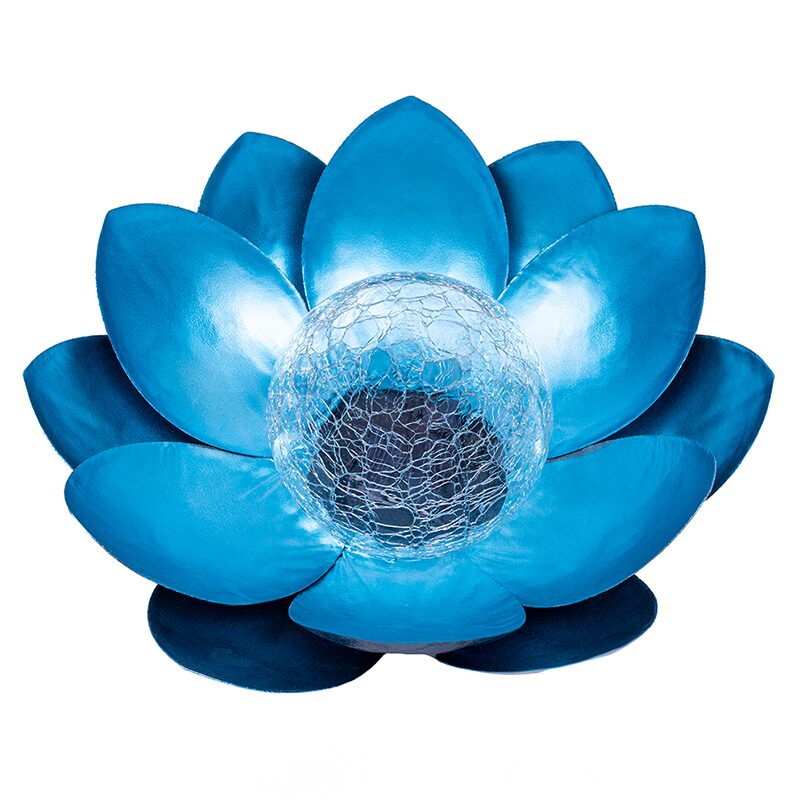 Lampa solara floare de lotus, Albastra, 3000K, 34 cm, ABS, 5 W, IP65