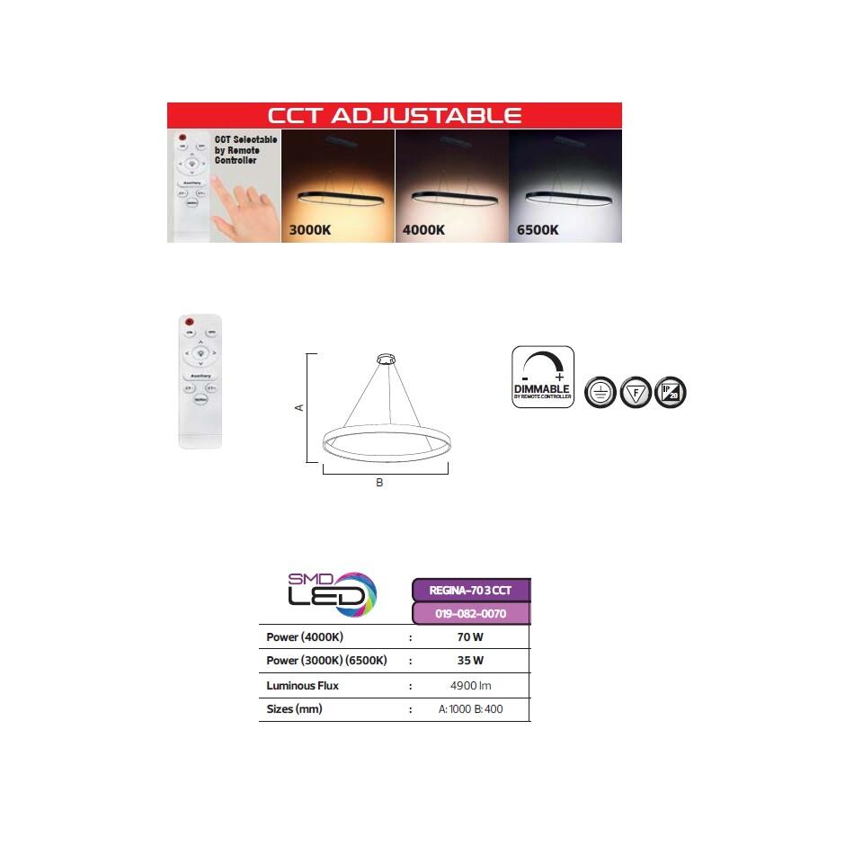 Lampa suspendata LED 70W 3CCT, 4900 lm, Alb, dimabila, telecomanda