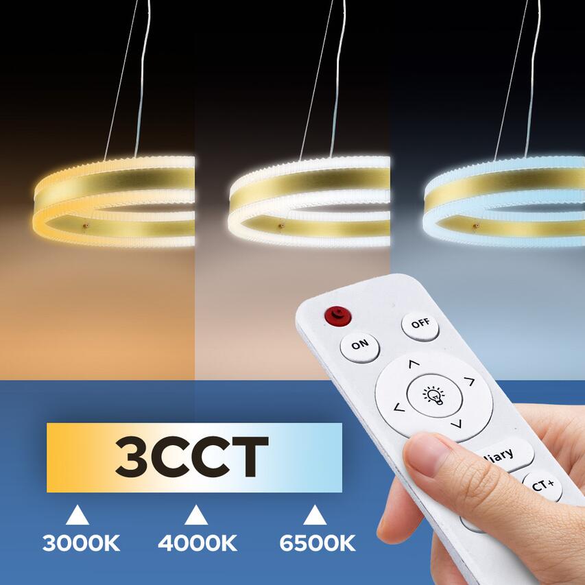 Lampa suspendata LED 70W 3CCT, 4900 lm, Auriu, dimabila, telecomanda