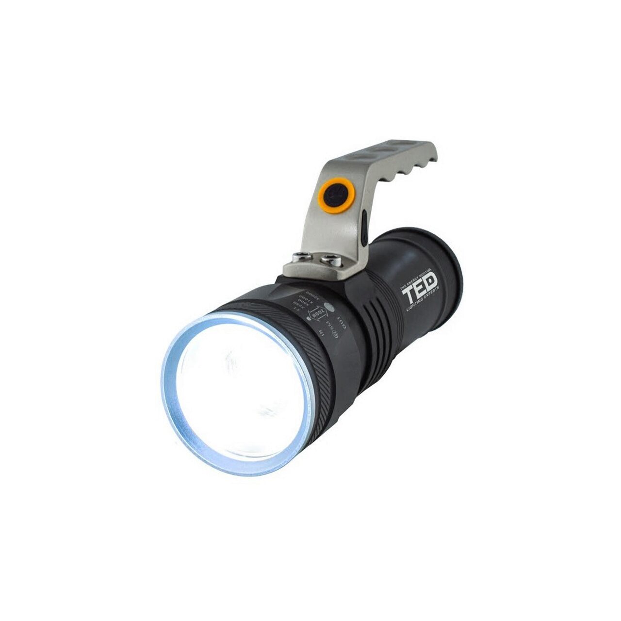 Lanterna metalica TED Electric, sursa lumina 1 LED 10W, functie zoom, include in set 3 acumulatori 18650 Li-Ion si cablu de incarcare micro USB